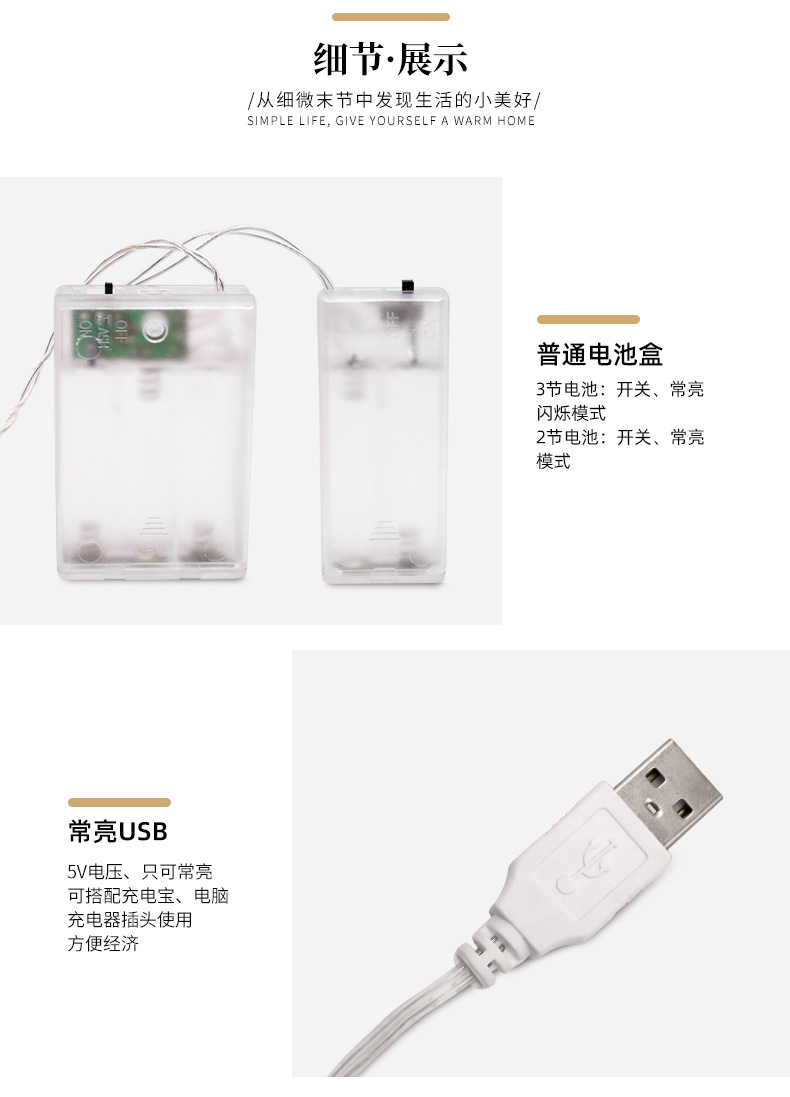 | 3 m 20 lamp usb remote control type(3米20灯USB遥控款) | USD $1.44 | 88666 piece available |