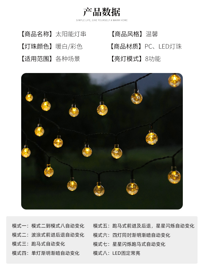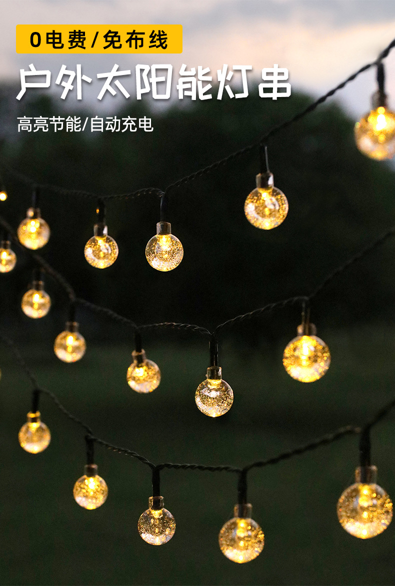 LED太阳能灯串 户外露营摆摊天幕圆球星星水滴气泡球装饰彩灯串