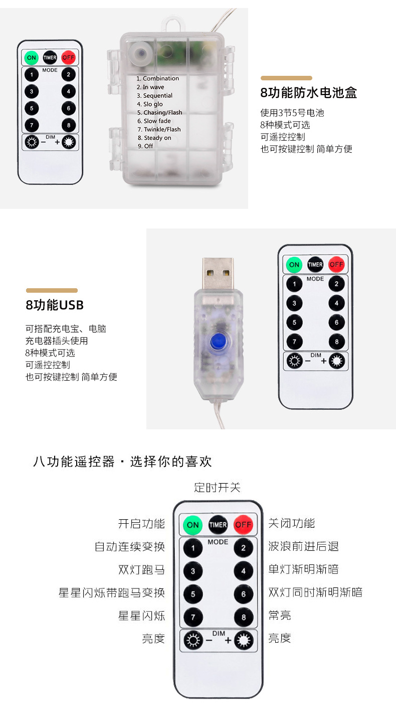 | 3 m 20 lamp usb remote control type(3米20灯USB遥控款) | USD $1.49 | 88666 piece available |