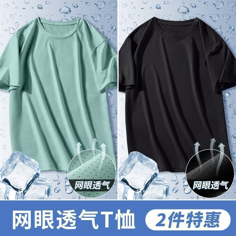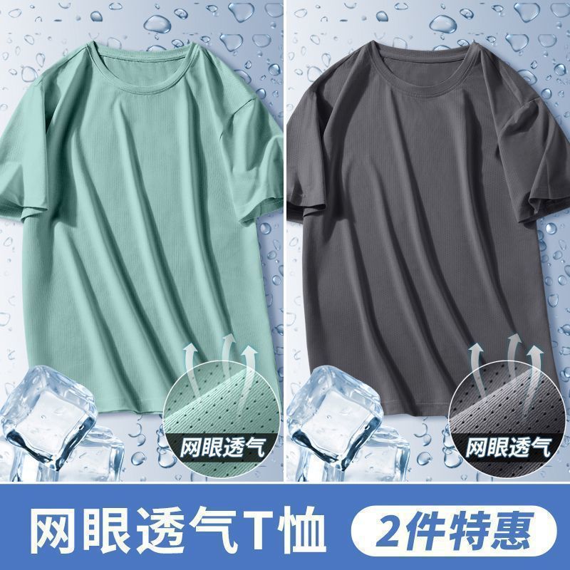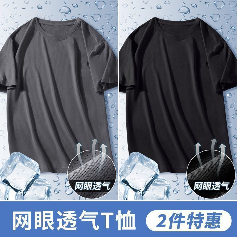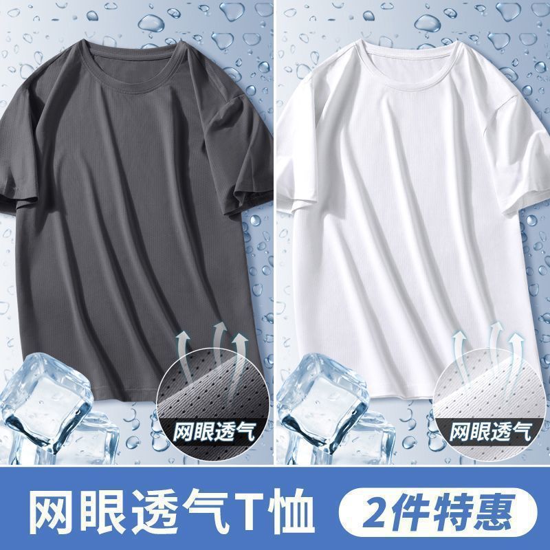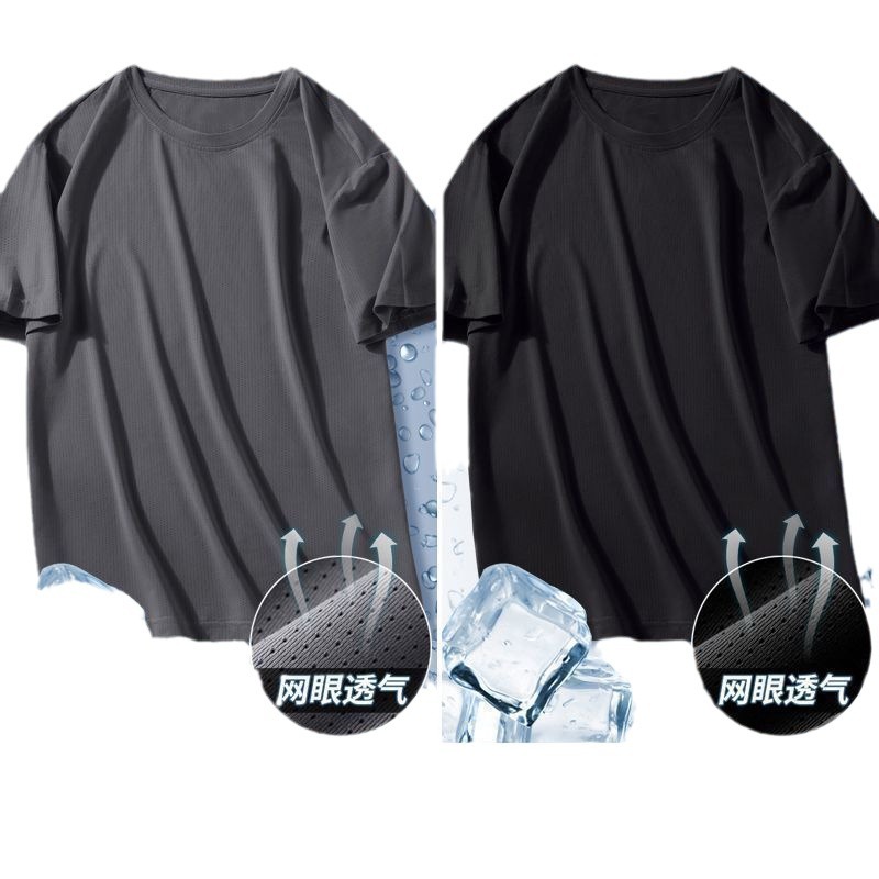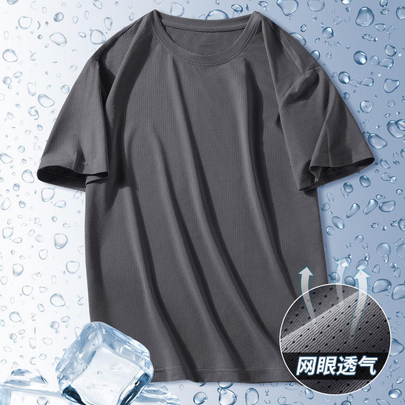 男士冰丝速干t恤短袖夏季新款透气凉感网眼体恤宽松健身休闲上衣