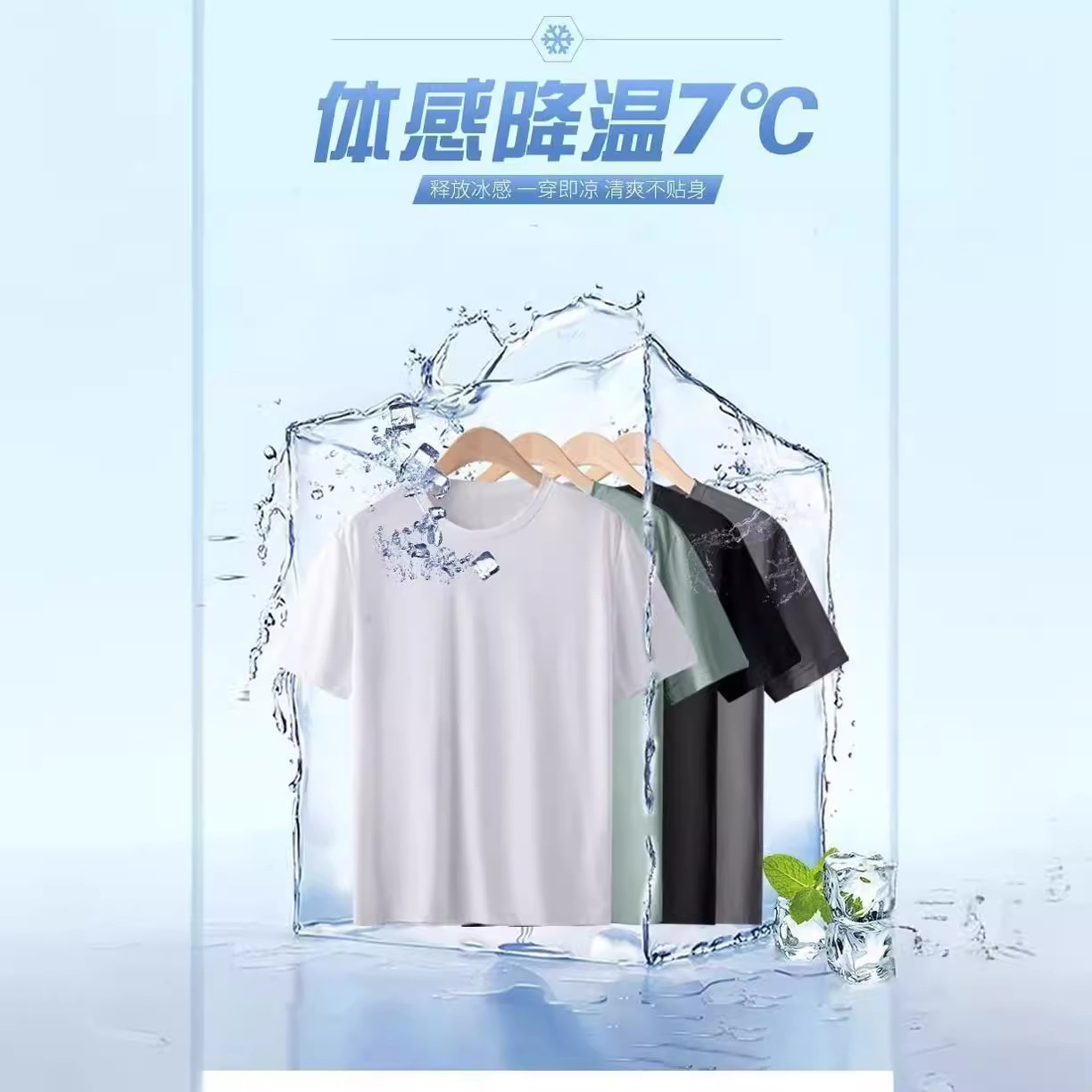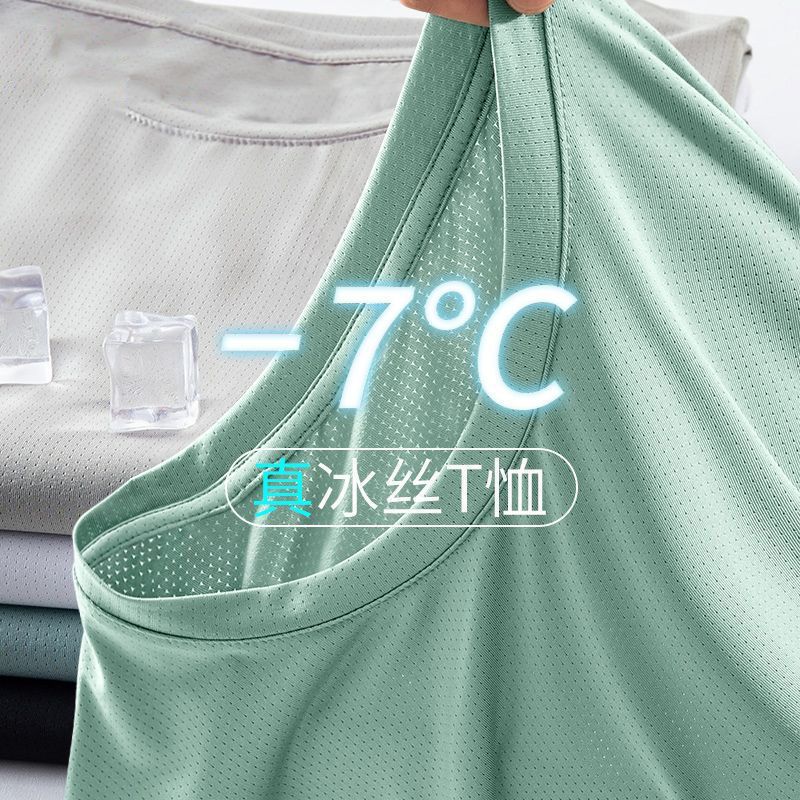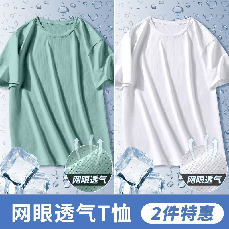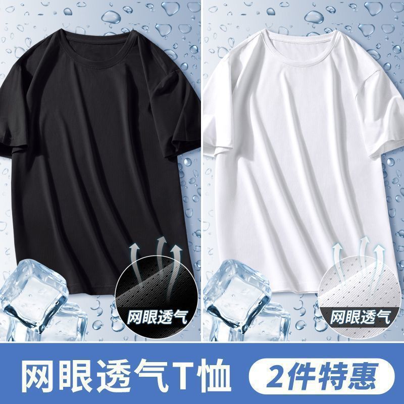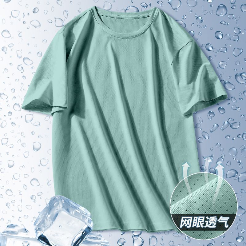 男士冰丝速干t恤短袖夏季新款透气凉感网眼体恤宽松健身休闲上衣
