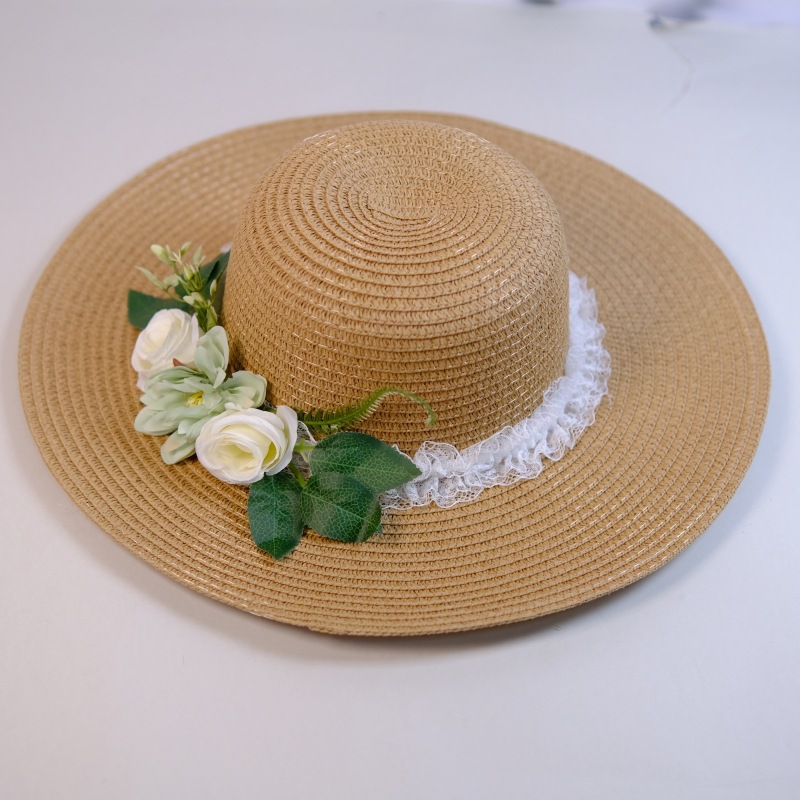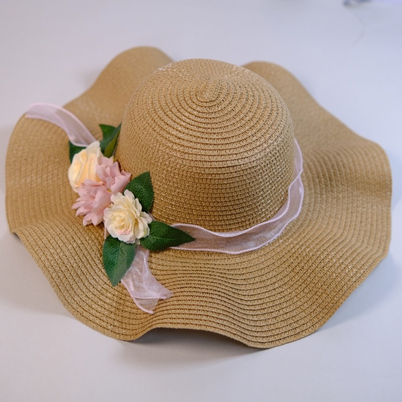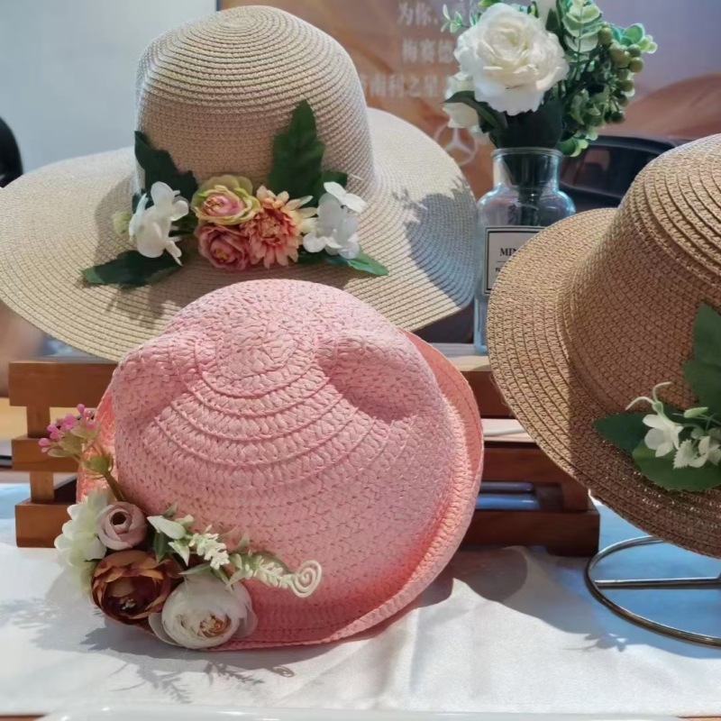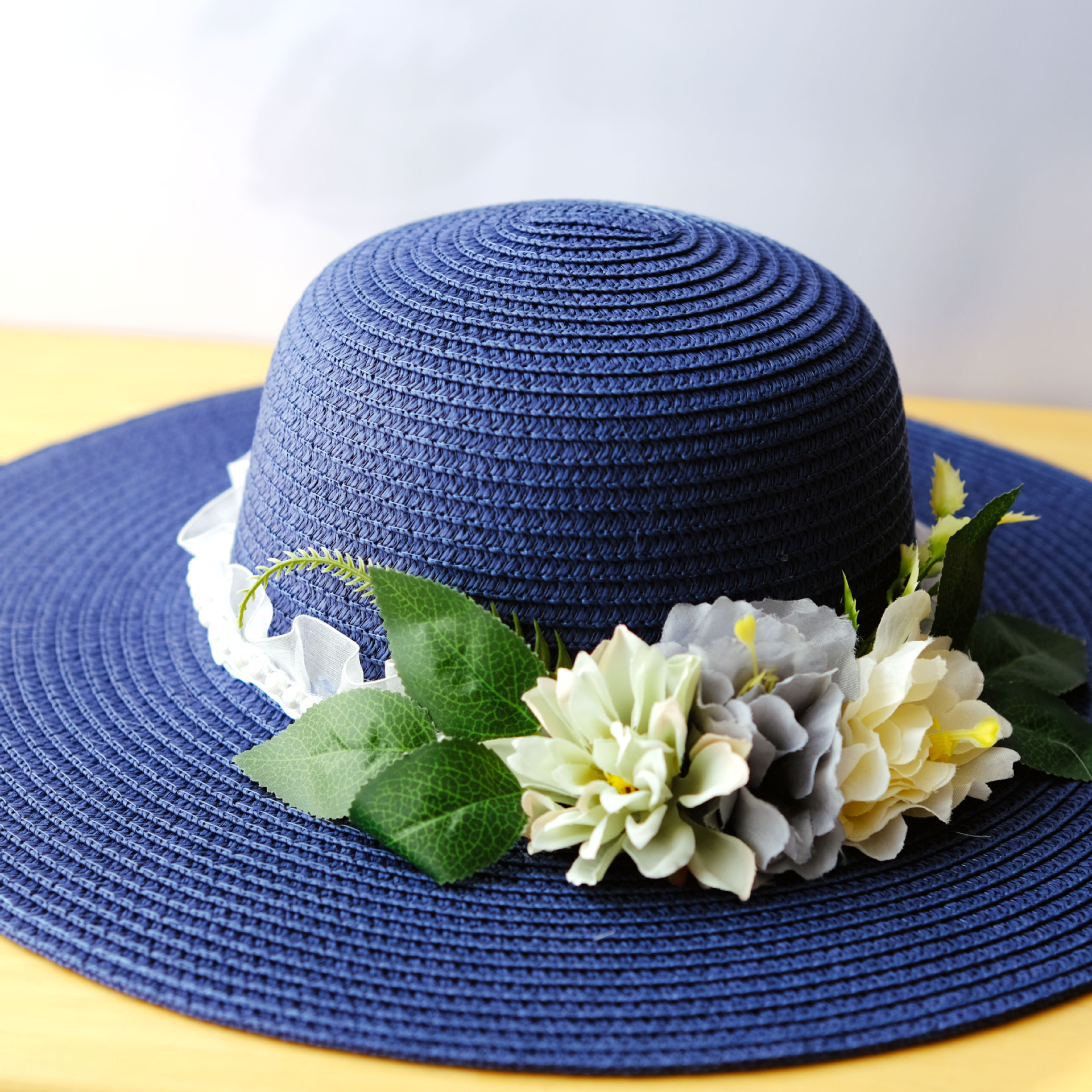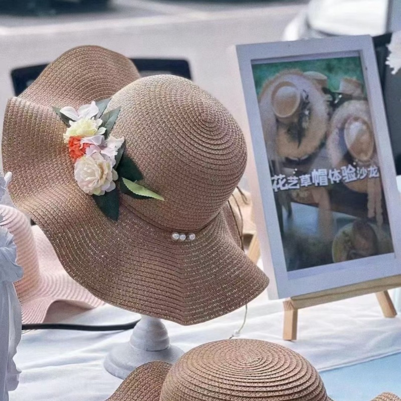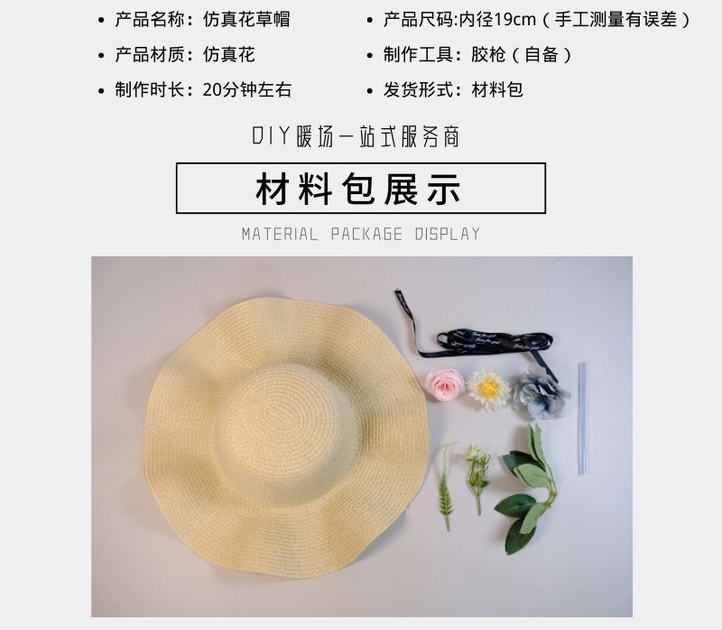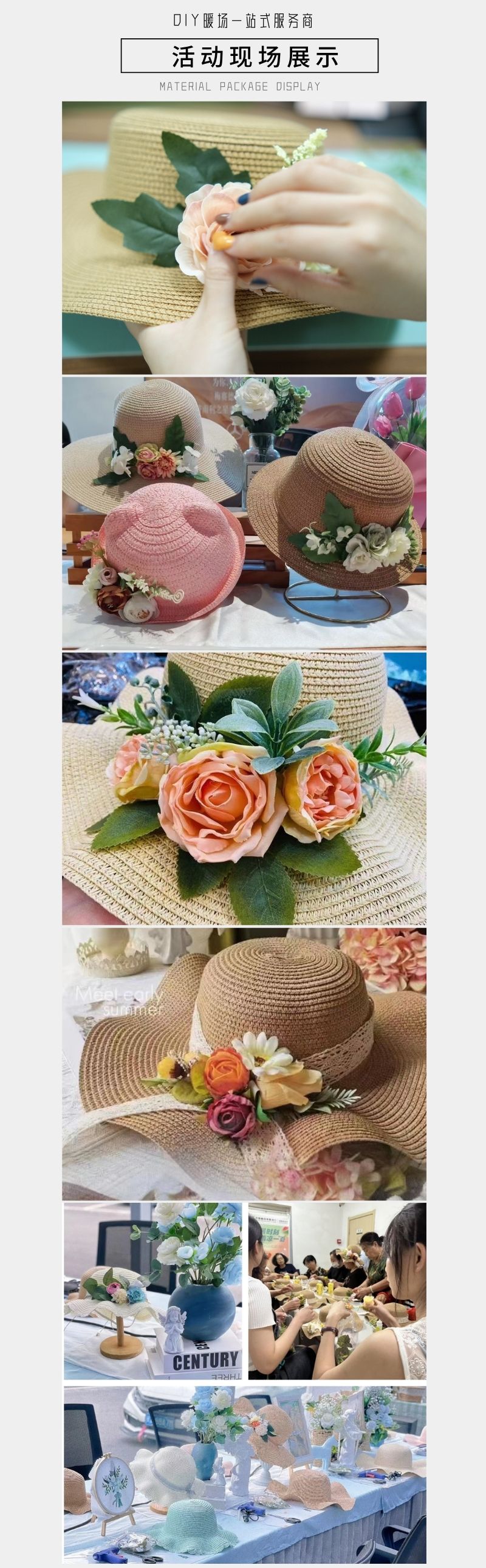 草帽diy手工材料包沙滩休闲度假遮阳暖场团建女花艺仿真花草帽