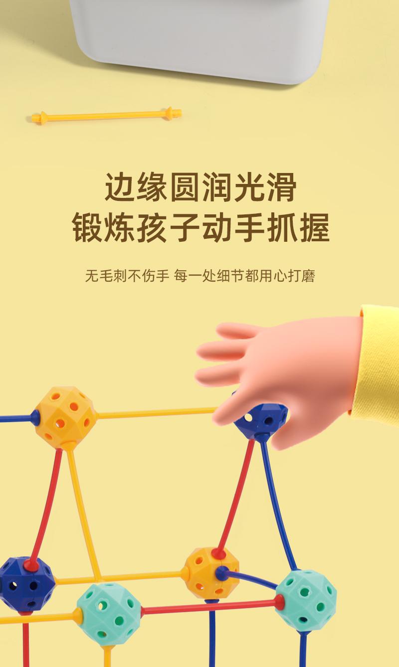 百变插珠跨境儿童玩具男女孩百变创意插珠立体几何拼插大颗粒积木