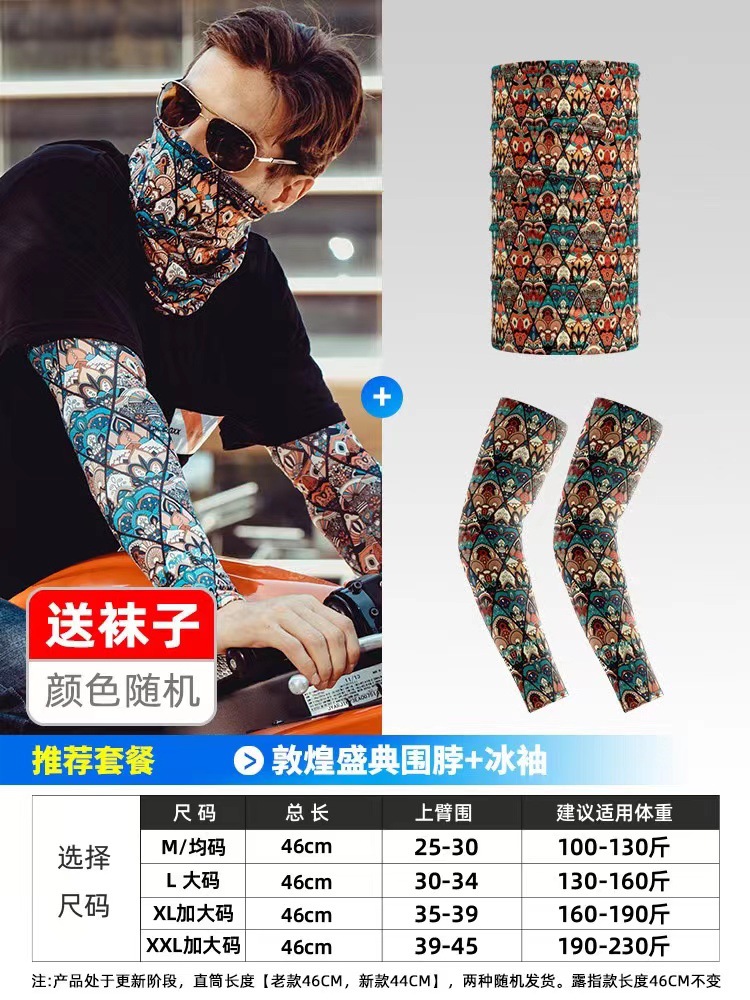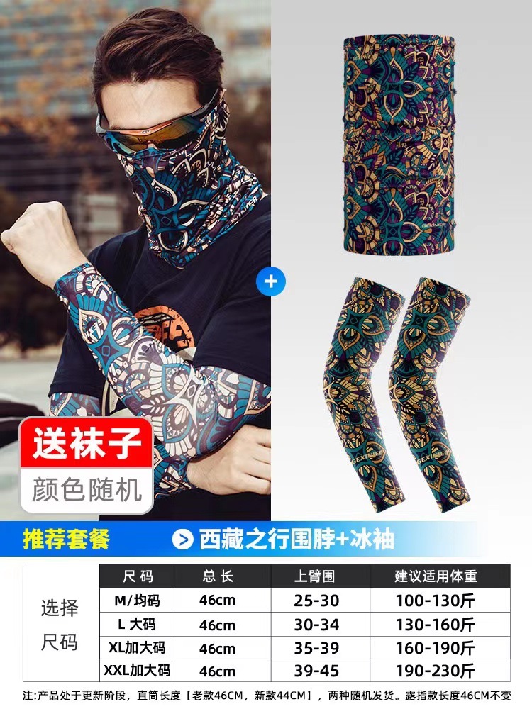防晒冰袖套男款袖套冰丝手套女夏季薄款防紫外线骑行面巾可开车源