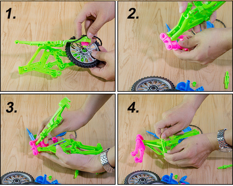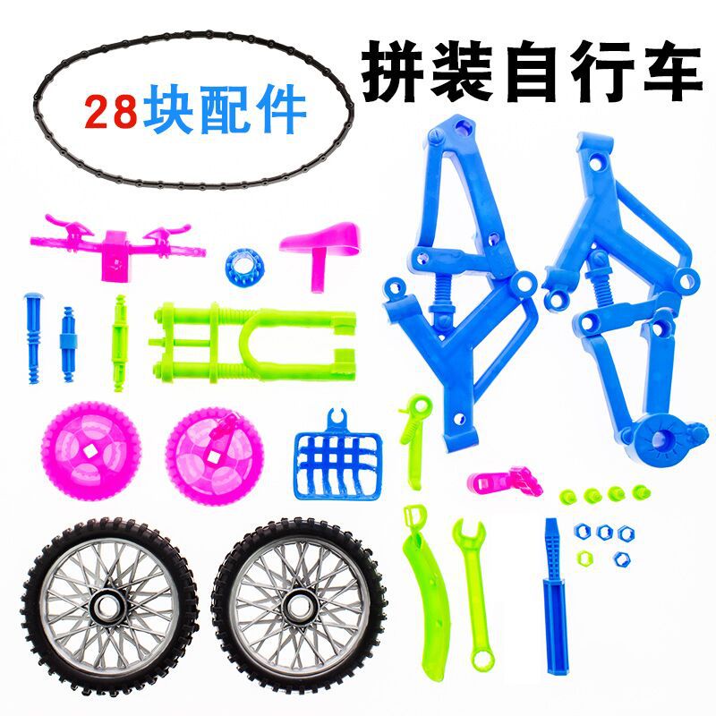 小颗粒积木拼装自行车手工diy材料包制作益智拼插儿童玩具批发