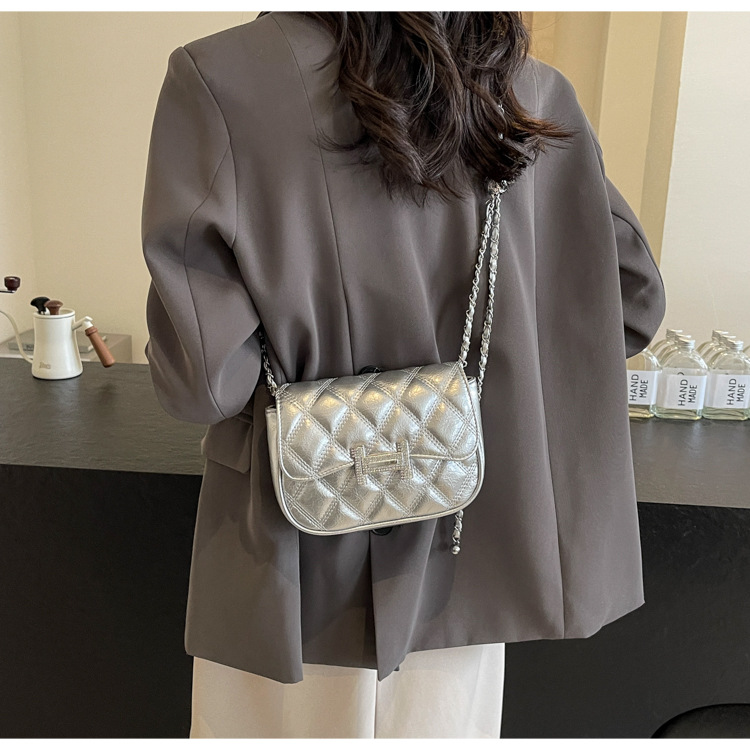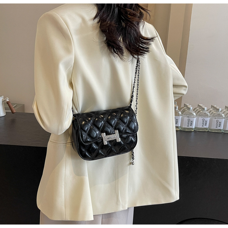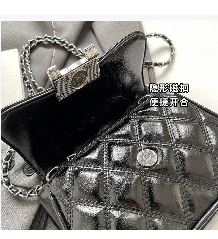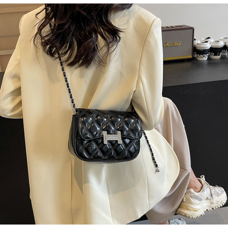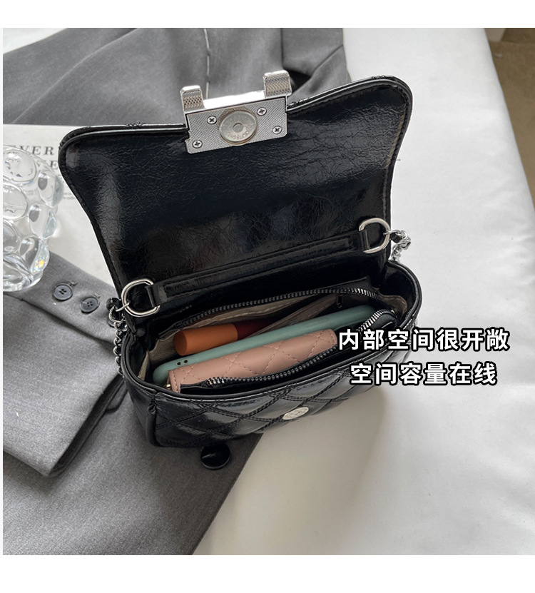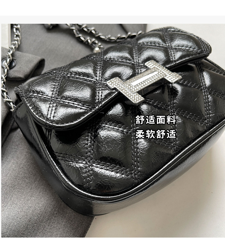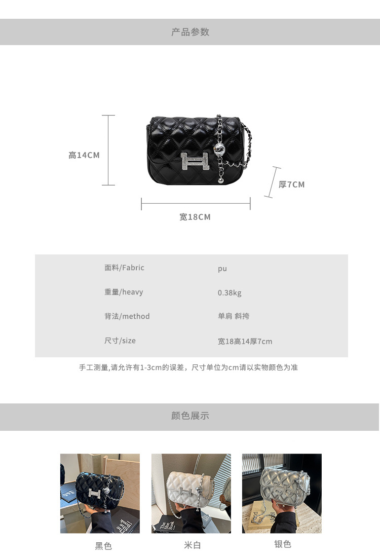 菱格链条小方包2024新款时尚洋气纯色斜挎包通勤小女包手机包