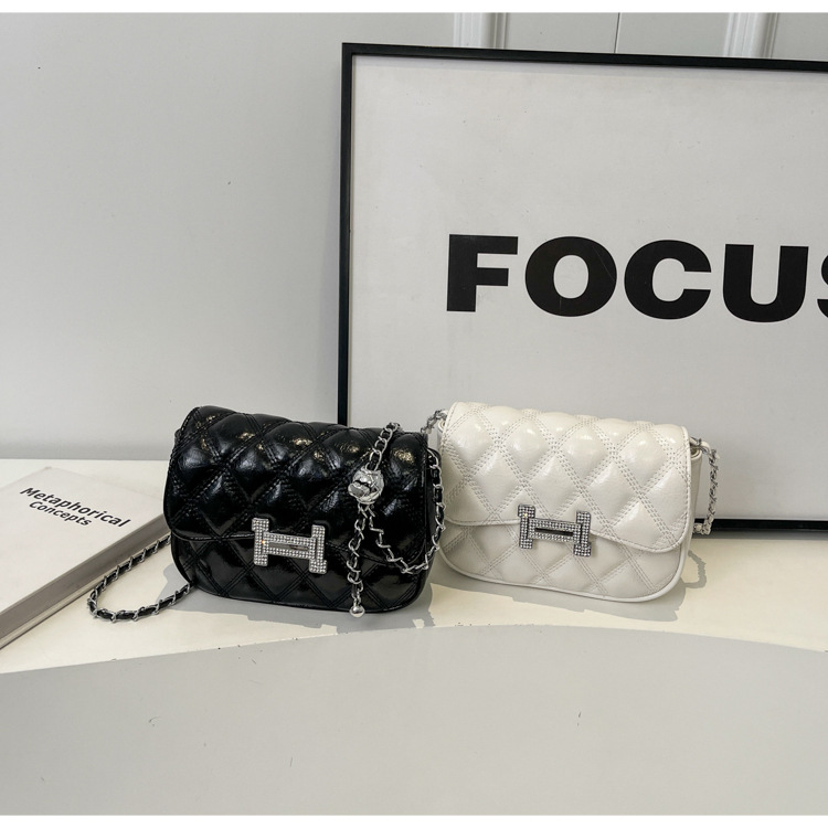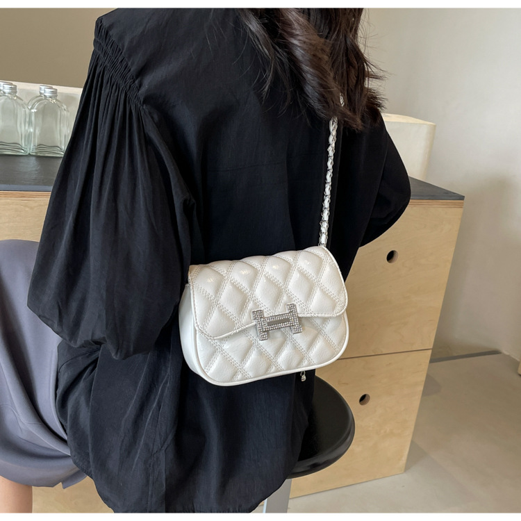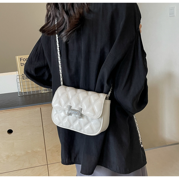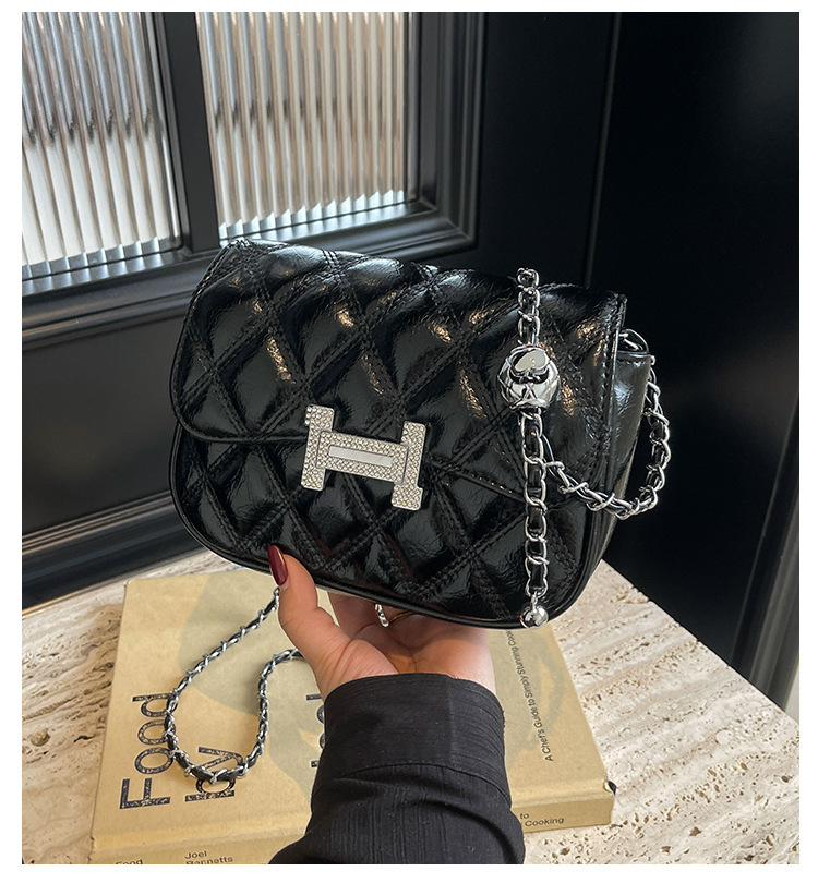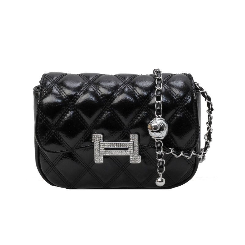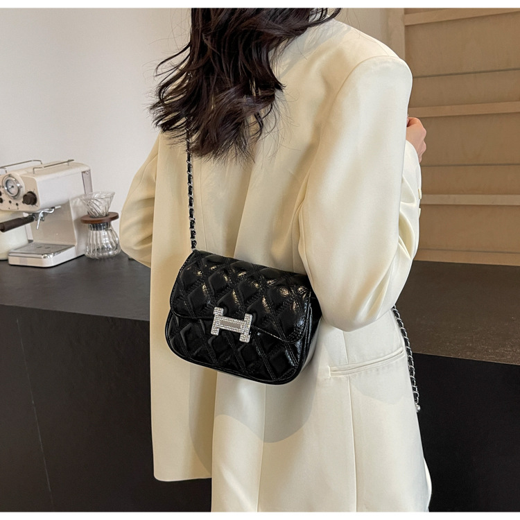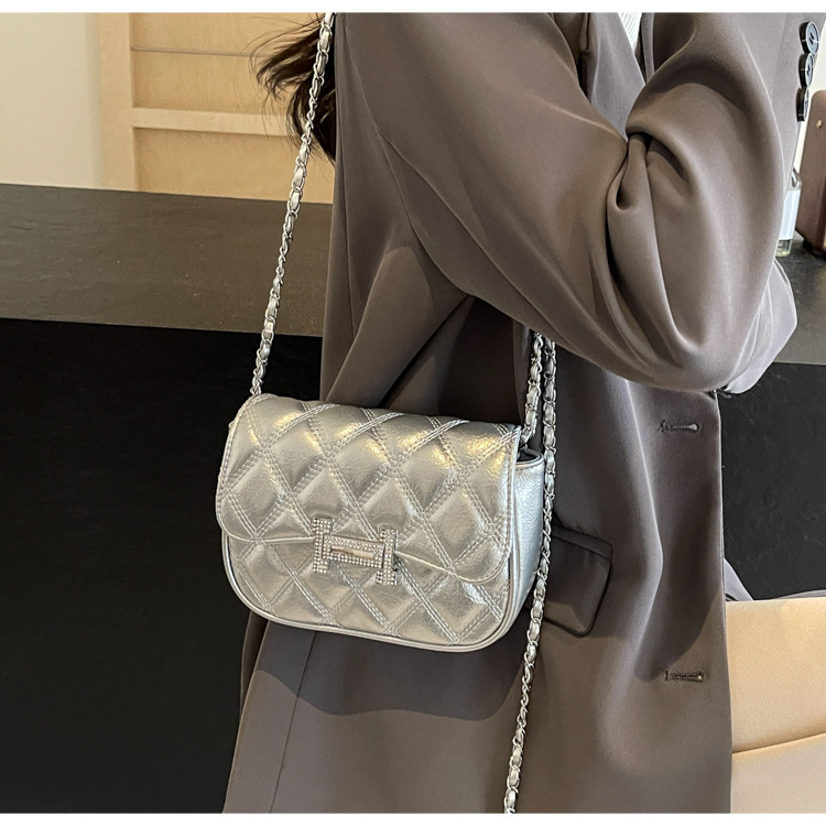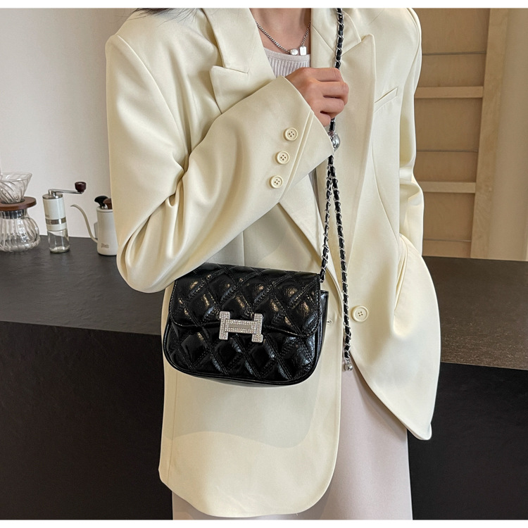菱格链条小方包2024新款时尚洋气纯色斜挎包通勤小女包手机包