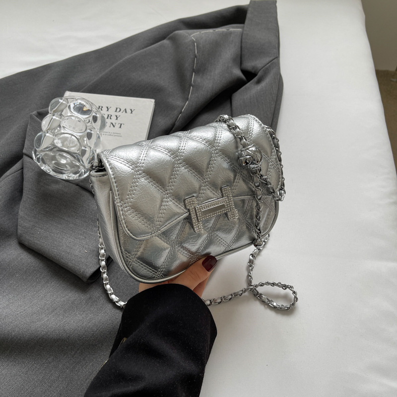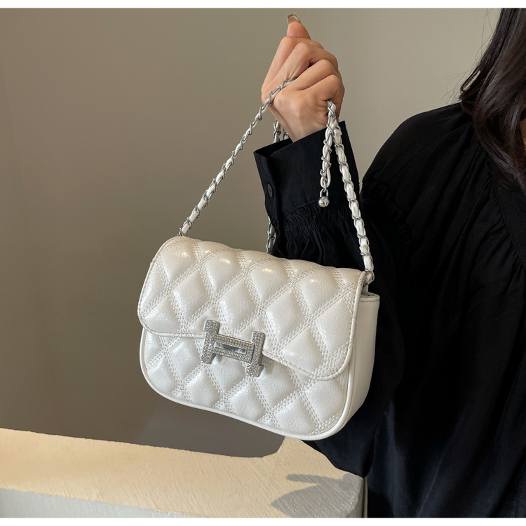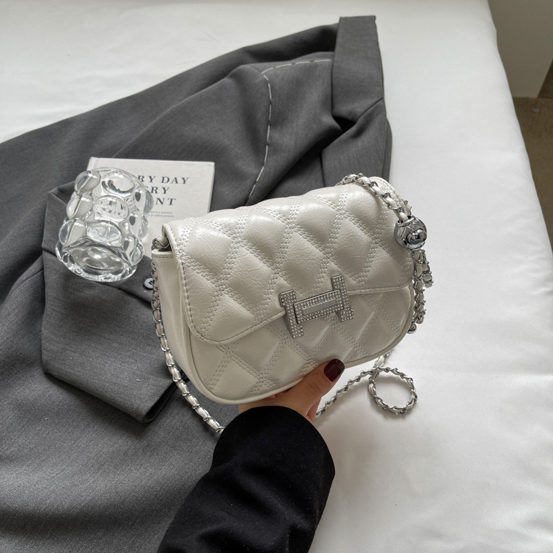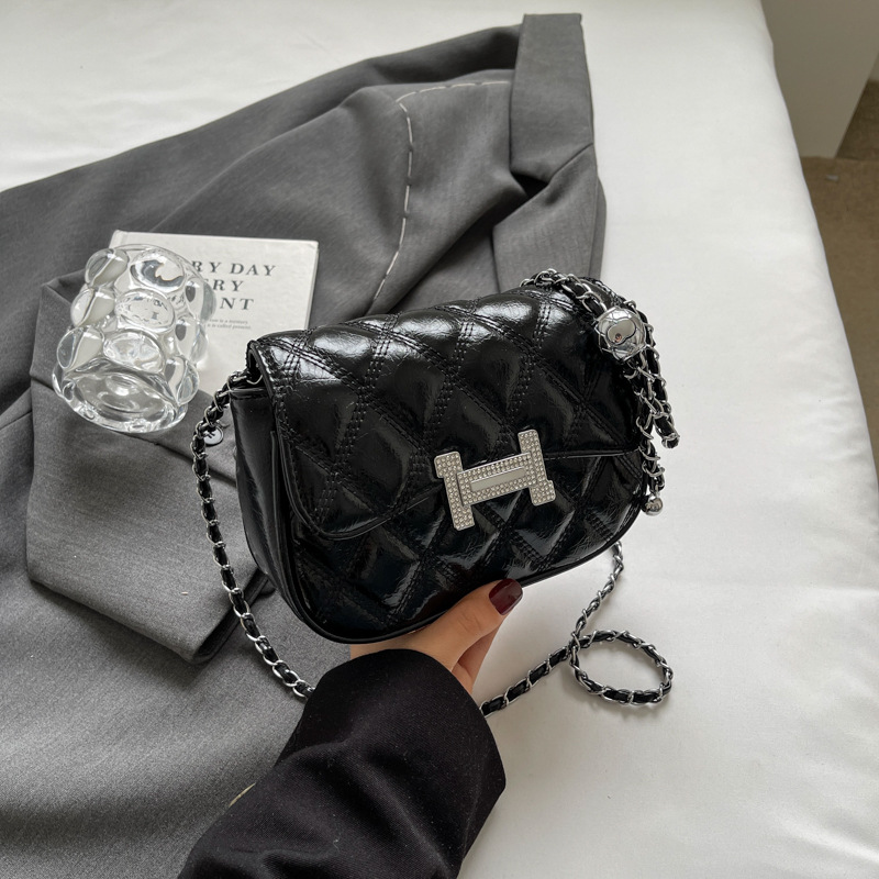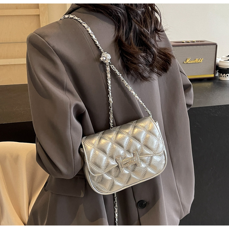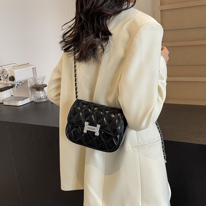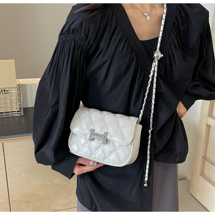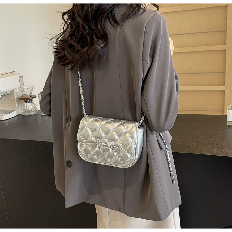 菱格链条小方包2024新款时尚洋气纯色斜挎包通勤小女包手机包