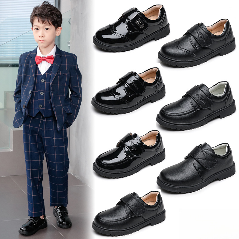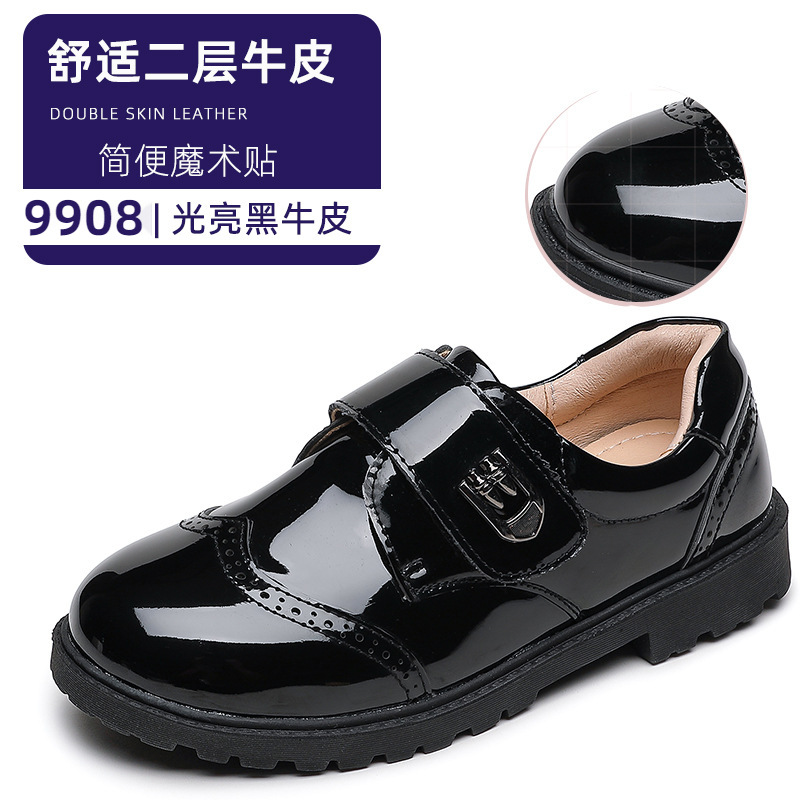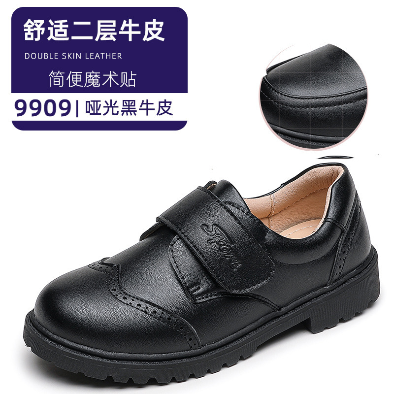 男童皮鞋学校表演鞋牛皮二层皮黑色男生中小学生魔术贴休闲礼仪鞋