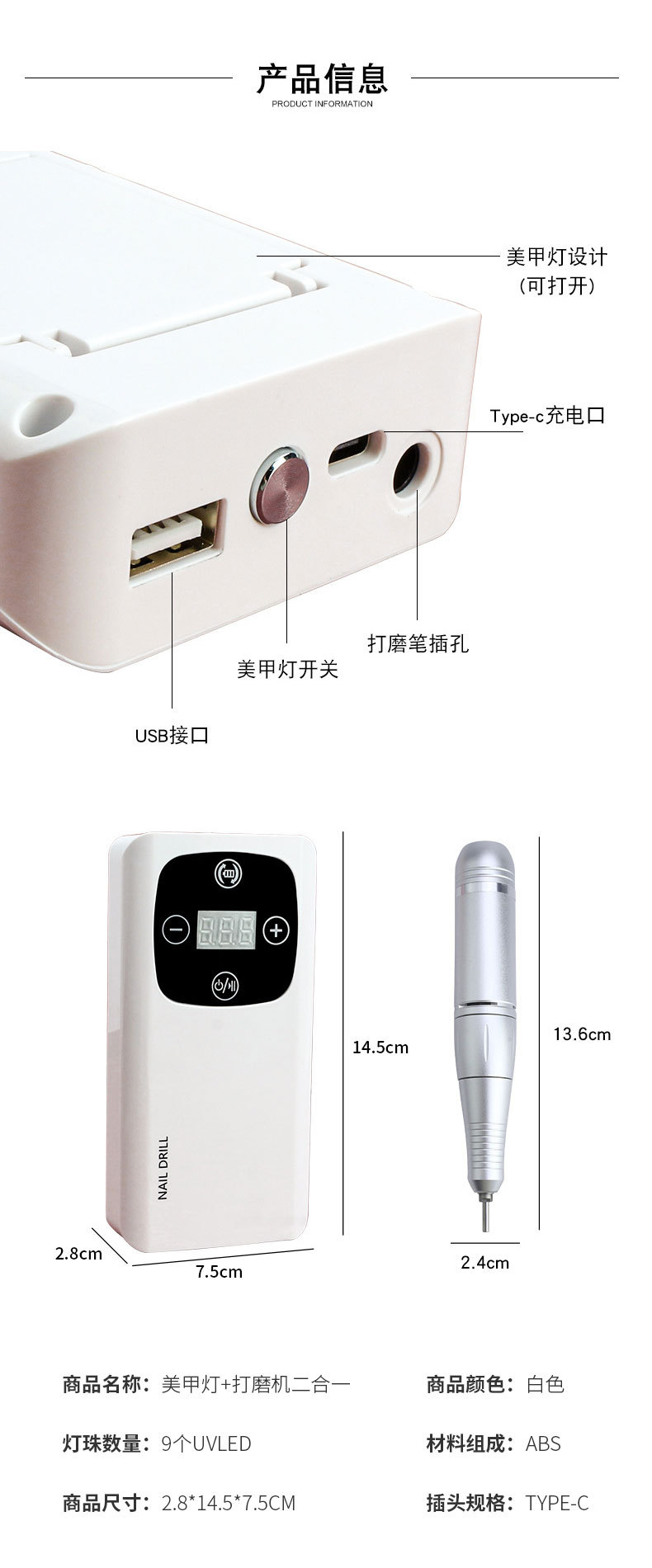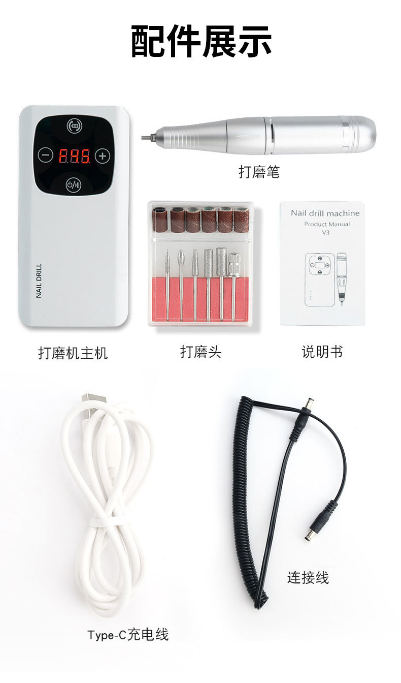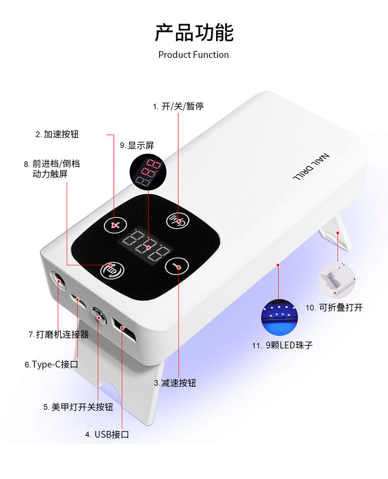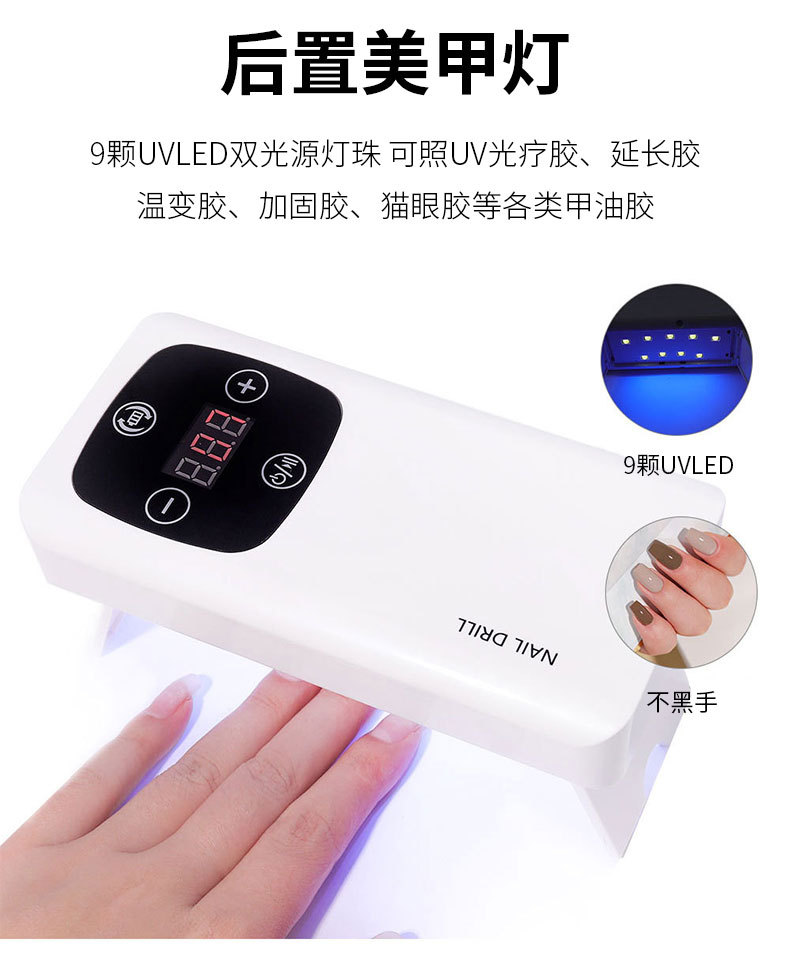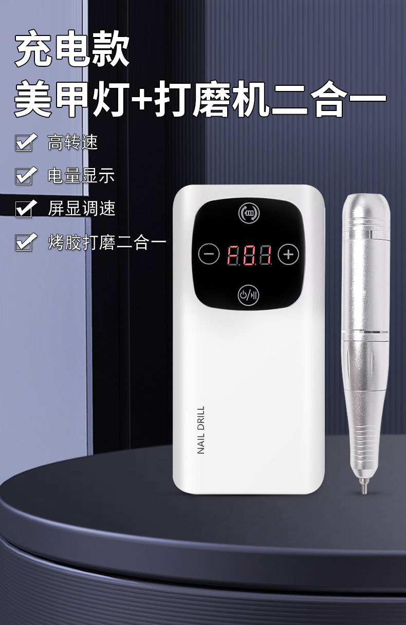 跨境美甲灯打磨机二合一45000RPM高转速美甲打磨机美甲店美甲烤灯