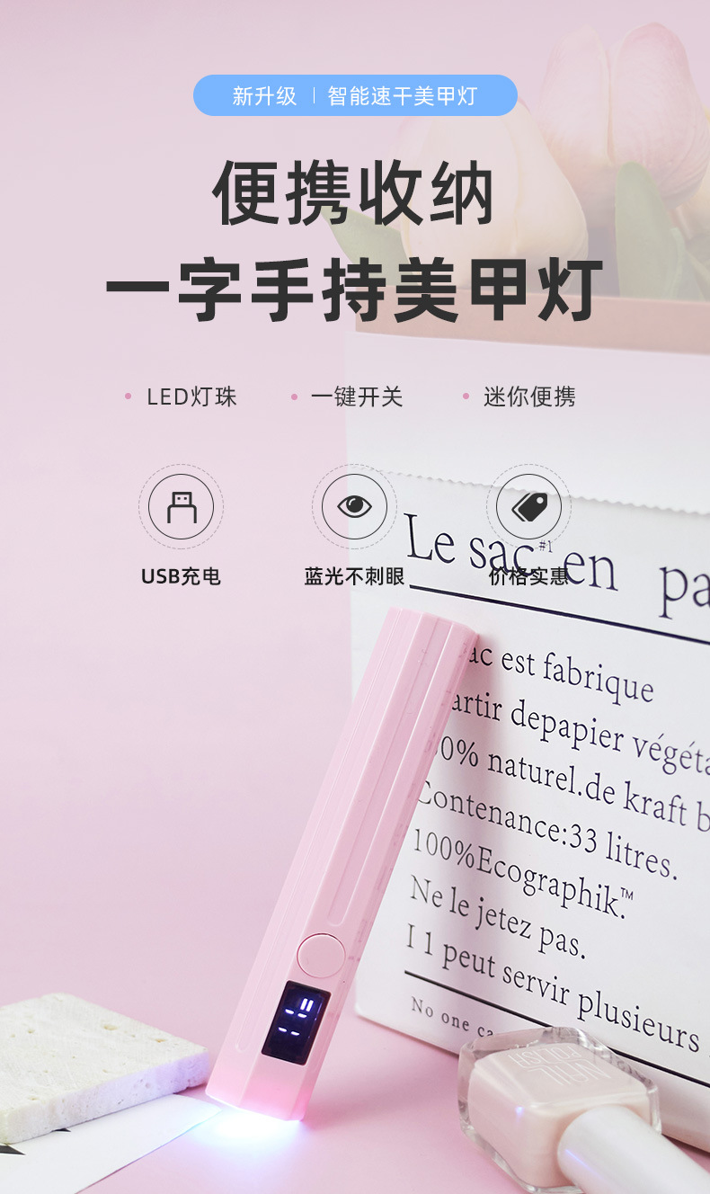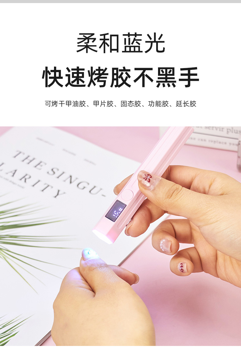 手持美甲一字灯蓄电池款二代屏显速干便携美甲光疗烘干烤灯不黑手