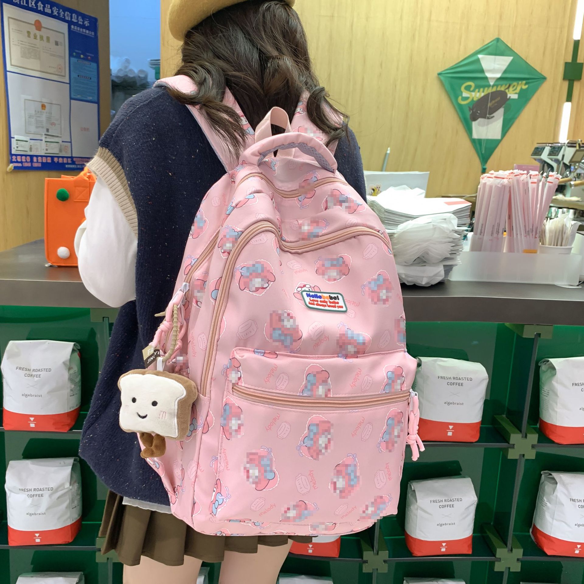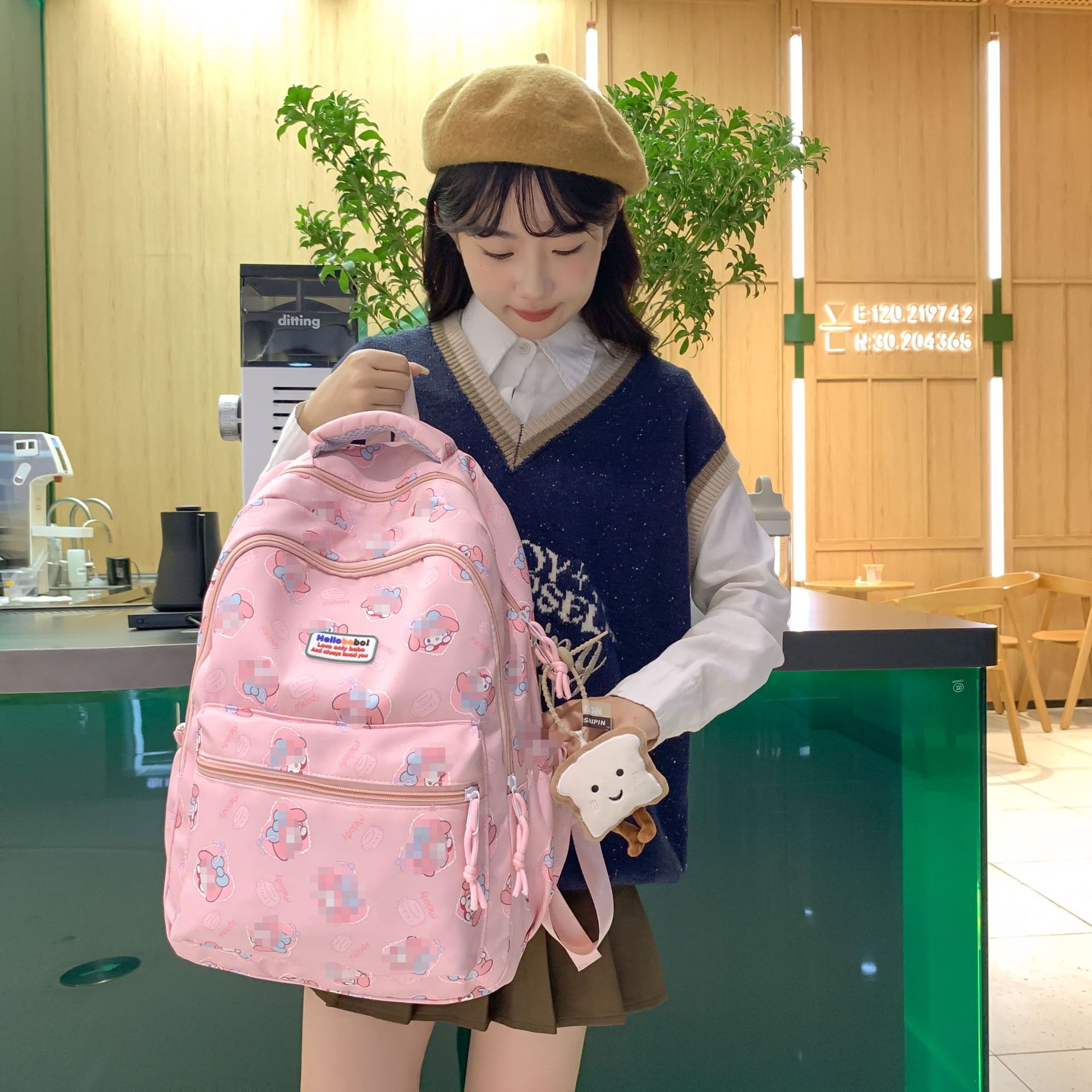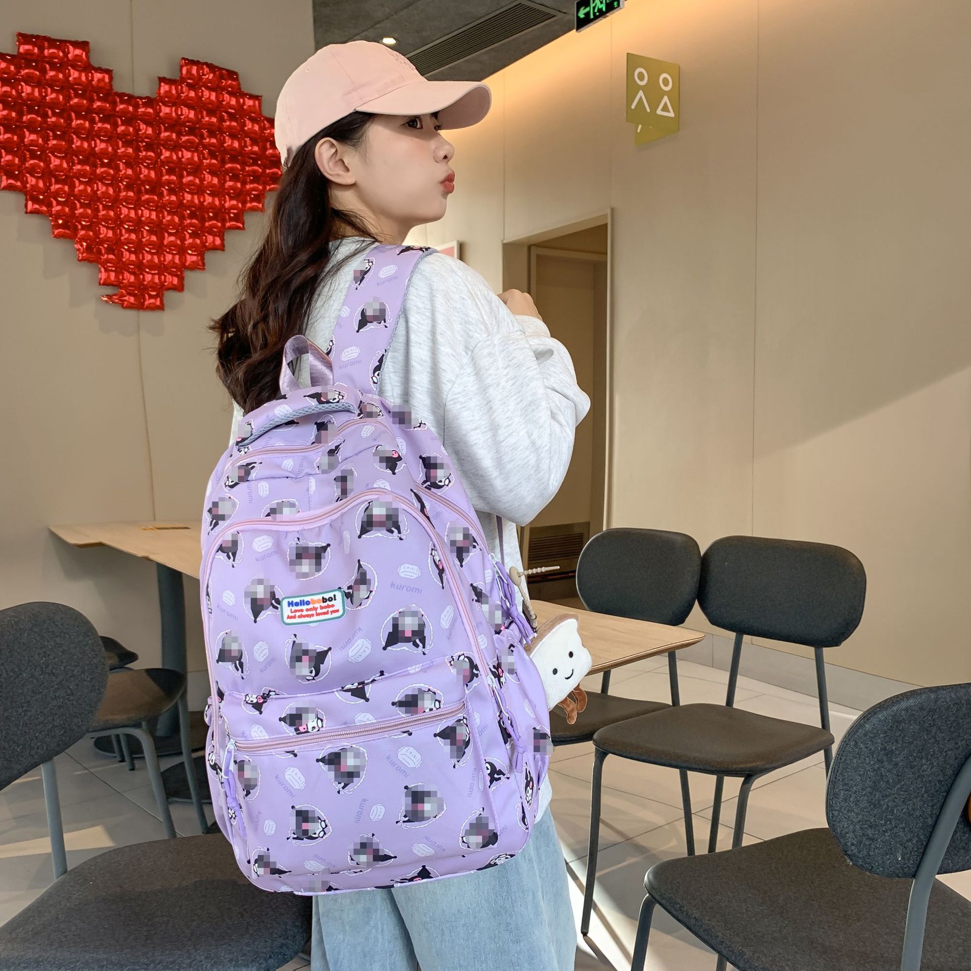 2024新款库洛米书包休闲双肩包女大学生高颜值印花大容量背包跨境