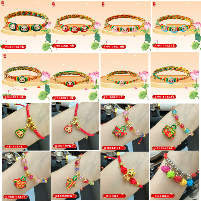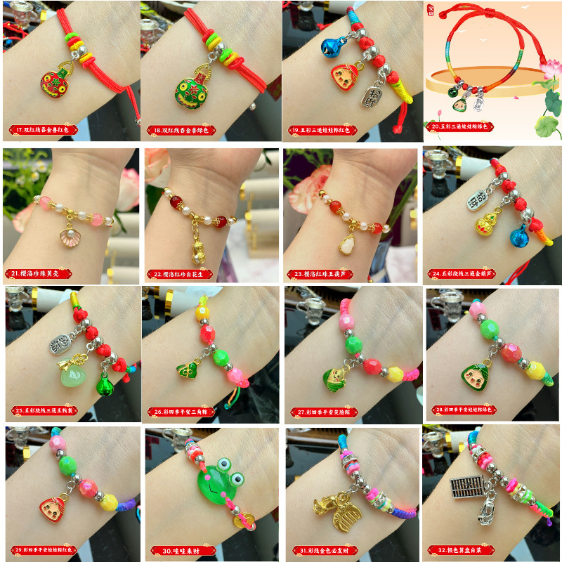 端午节手链,大人儿童都喜欢,40多个款式,一小捆20条是一个款式,量越大款式颜色越多,自带手拉调节,款式颜色不定时更新,做工精细,寓意美好,款式配件高端大气上档次,时尚百搭,老少皆宜,大人小孩都可以佩戴,款式多,颜色全,总有一款适合您