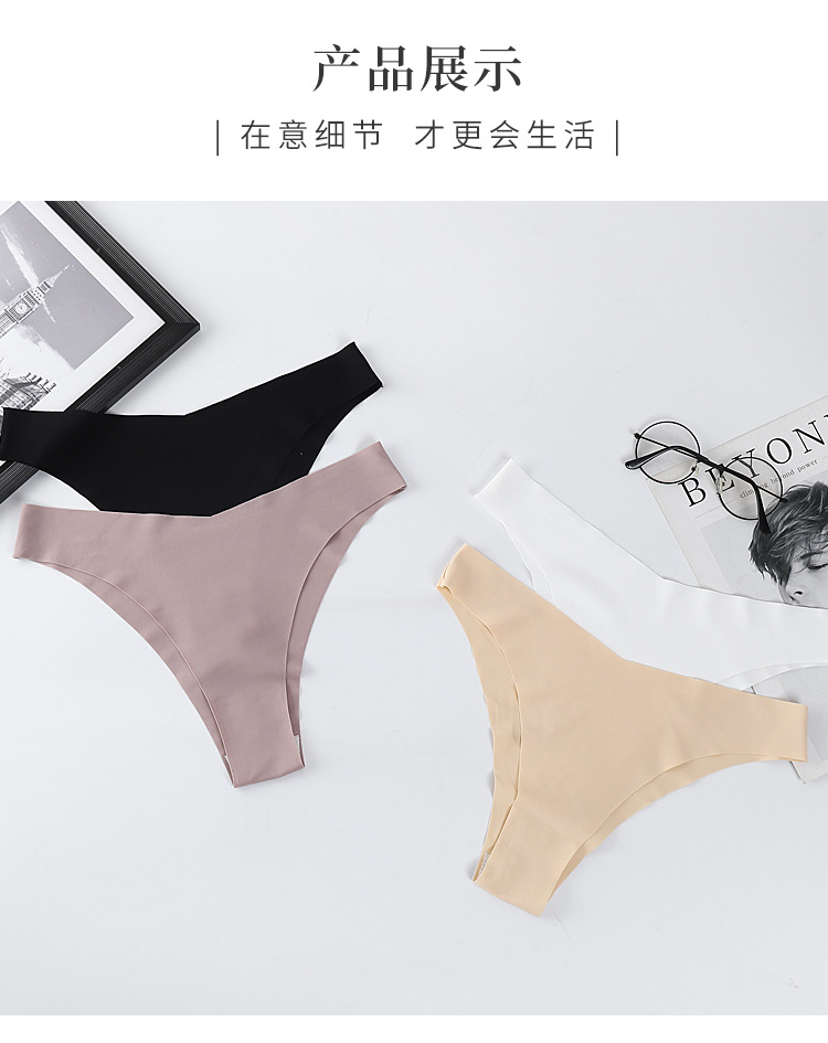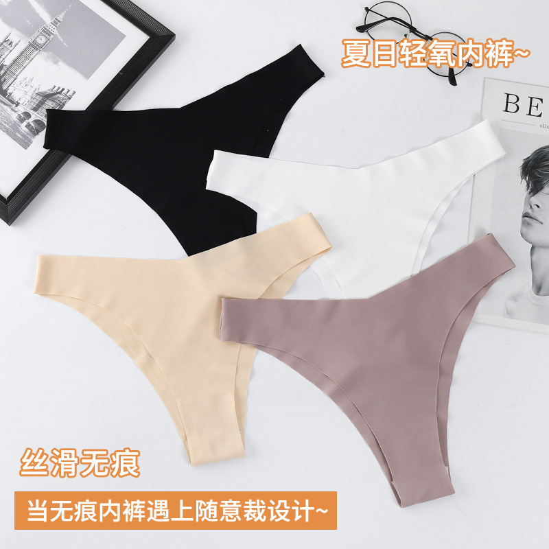 2024跨境亚马逊欧美性感内裤女无痕T裤冰丝低腰丁字裤女棉裆工厂
