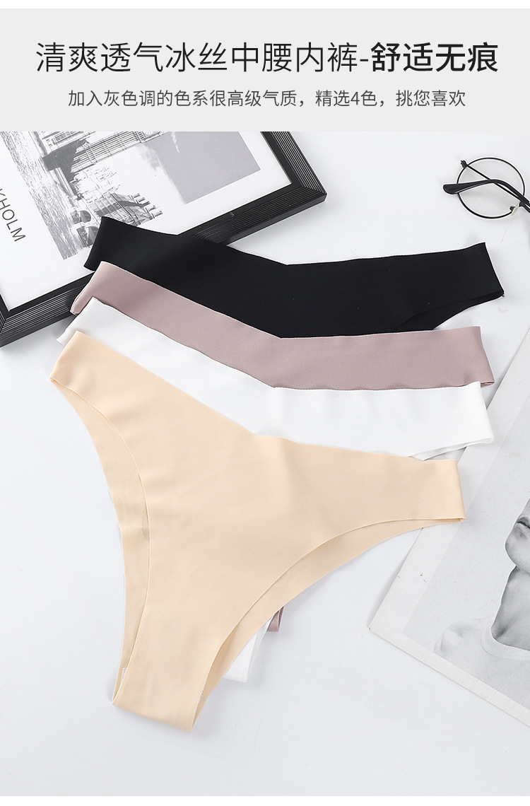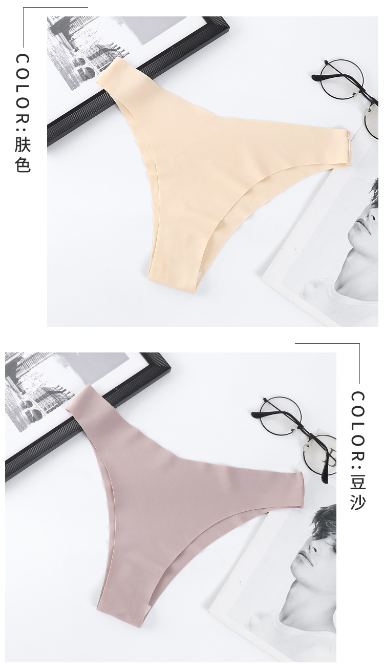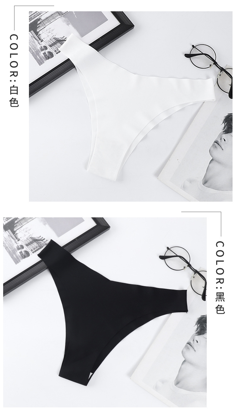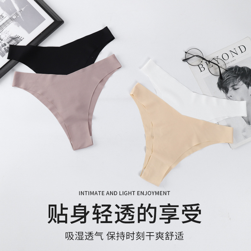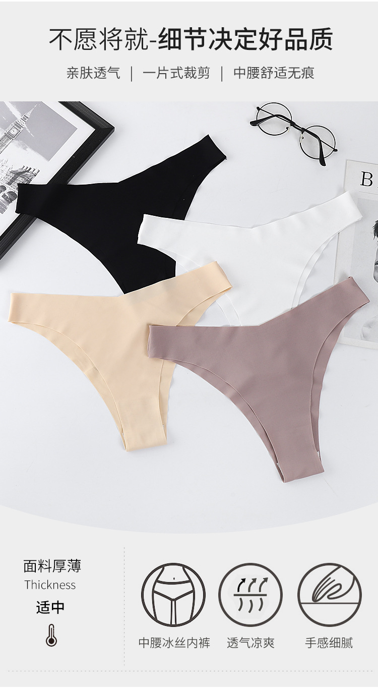 跨境外贸亚马逊欧美性感内裤女无痕T裤冰丝低腰丁字裤女棉裆批发