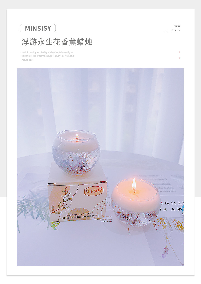 一花一世界浮游永生花结婚伴手礼香薰蜡烛 生日礼物水晶果冻蜡烛
