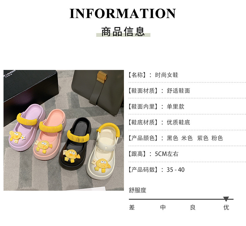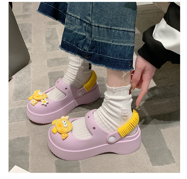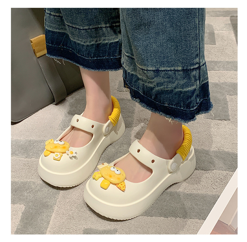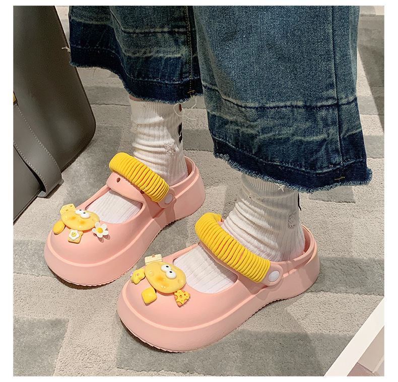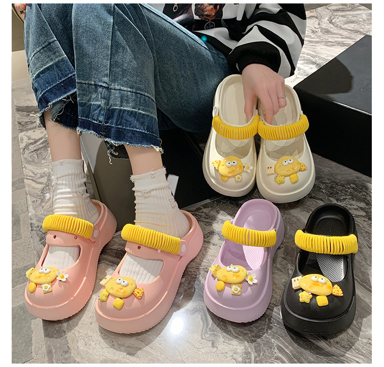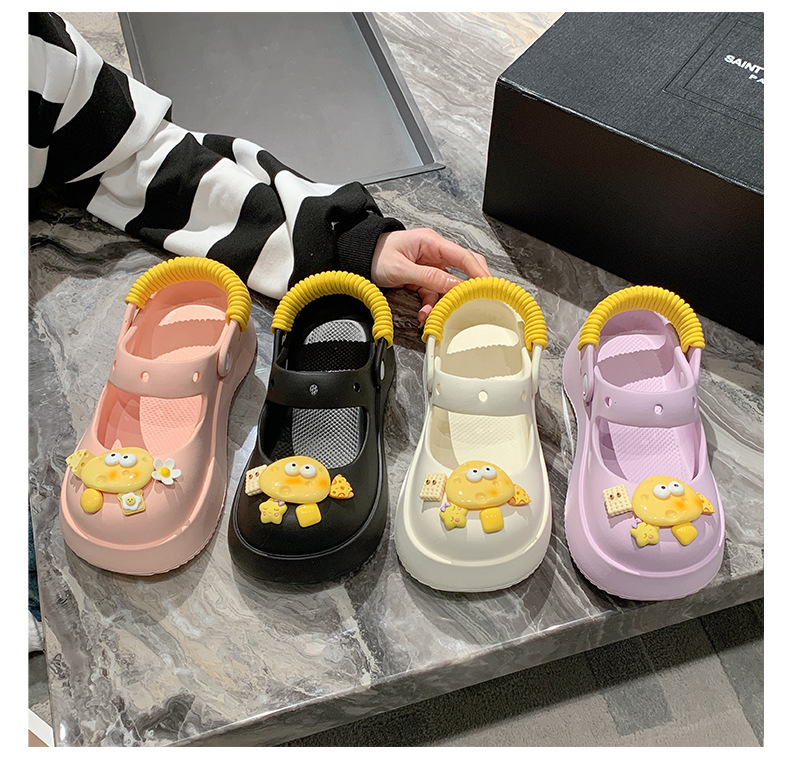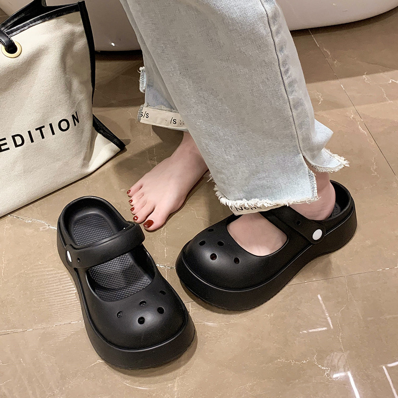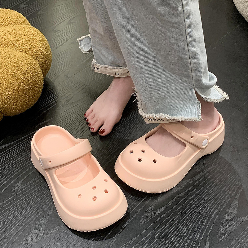 网红玛丽珍洞洞鞋女夏季卡通可爱厚底外穿DIY带配饰踩屎感凉拖鞋