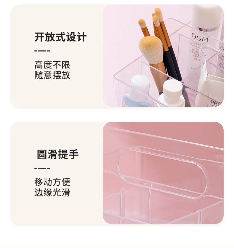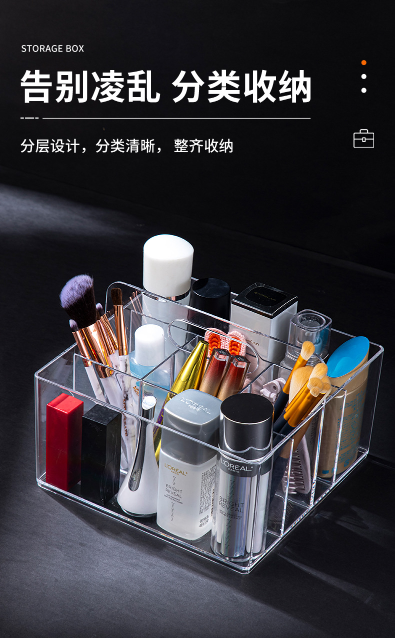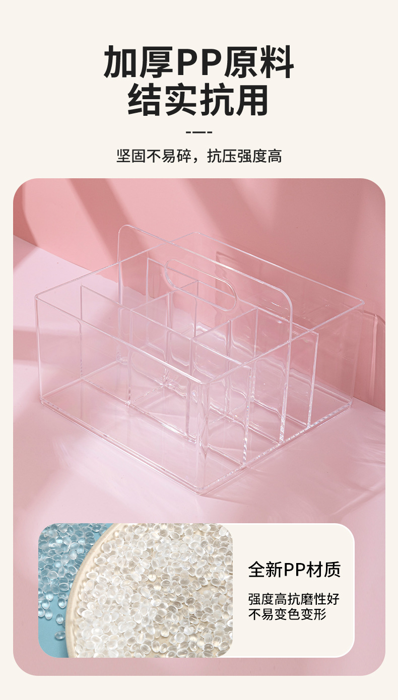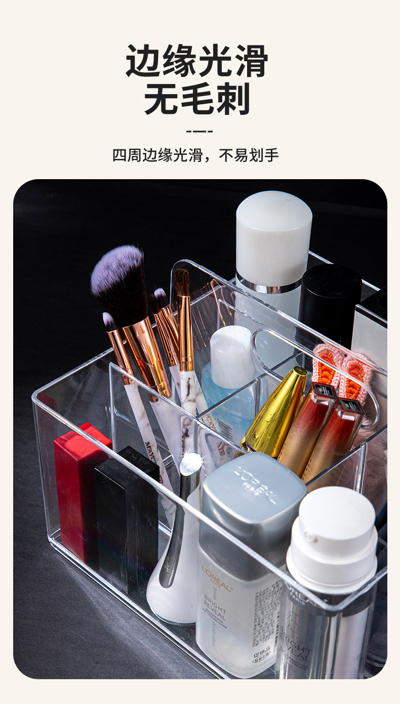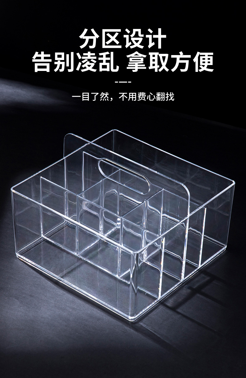 D7001透明化妆品收纳盒饰品盒桌面收纳手提盒可放化妆刷简约款