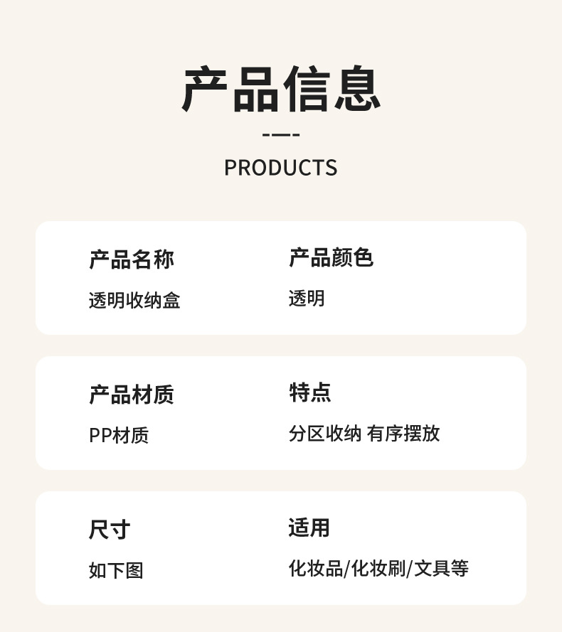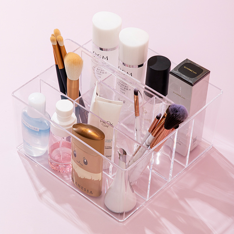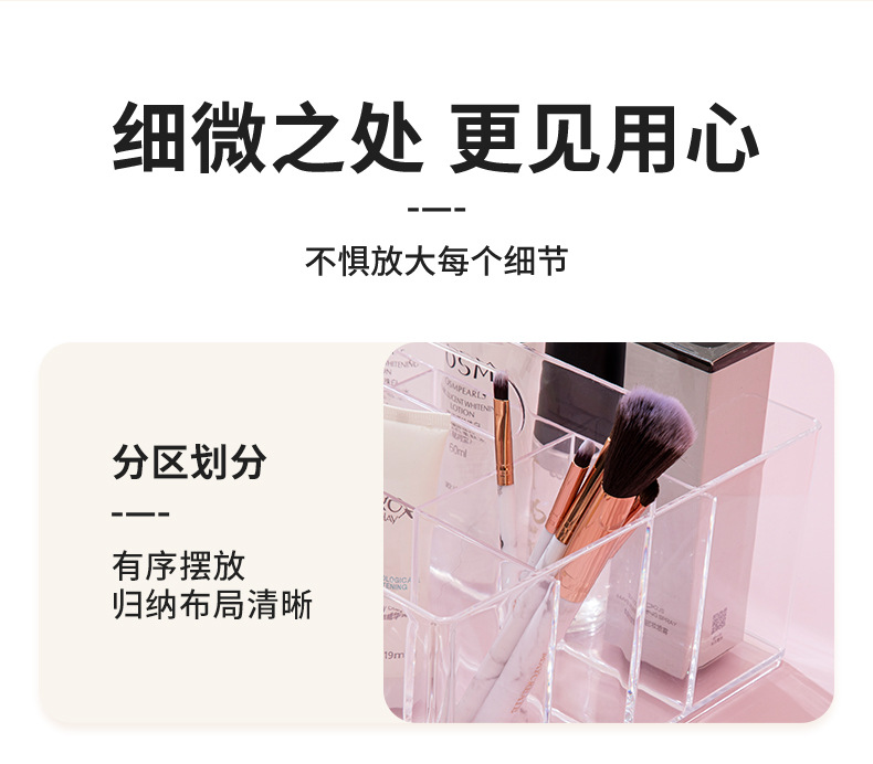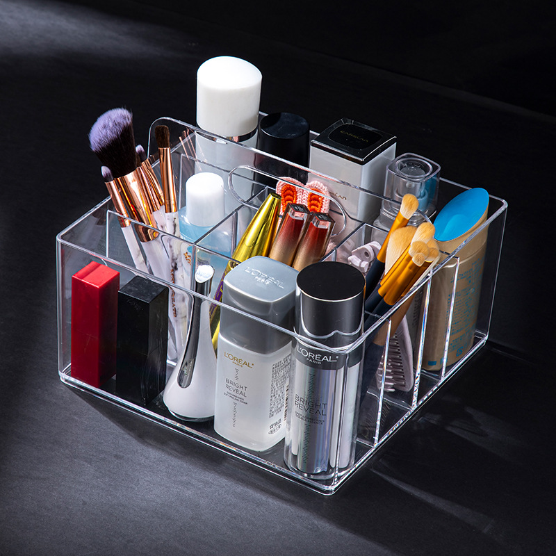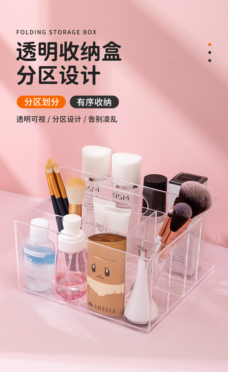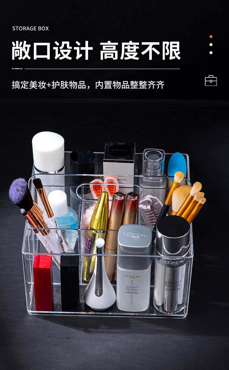 D7001透明化妆品收纳盒饰品盒桌面收纳手提盒可放化妆刷简约款