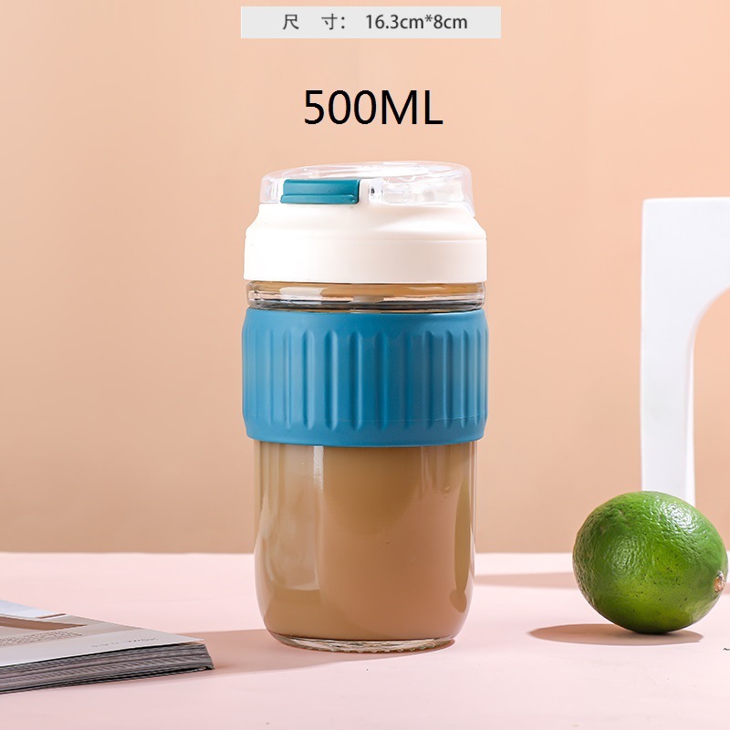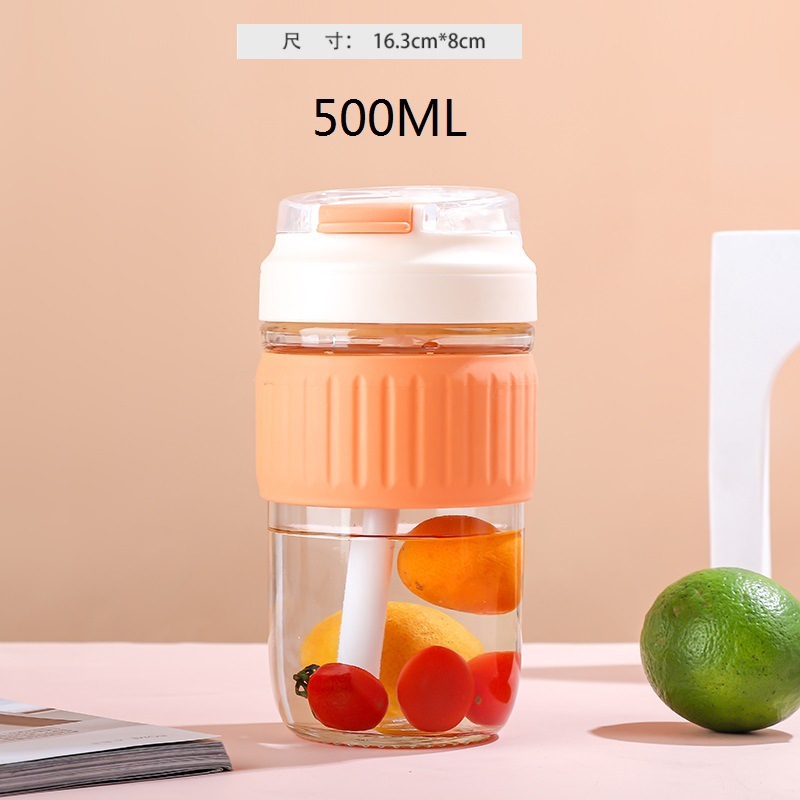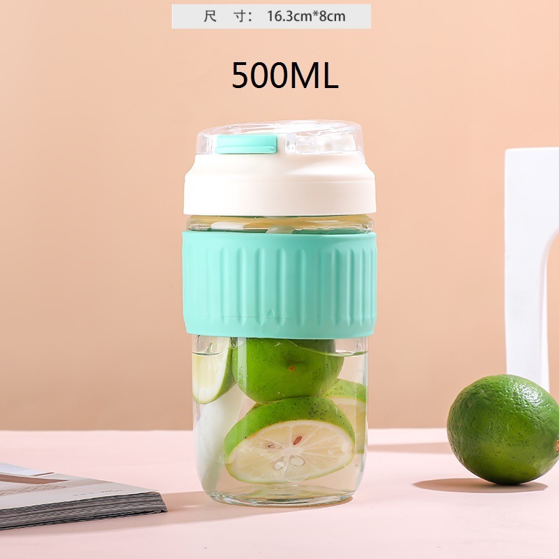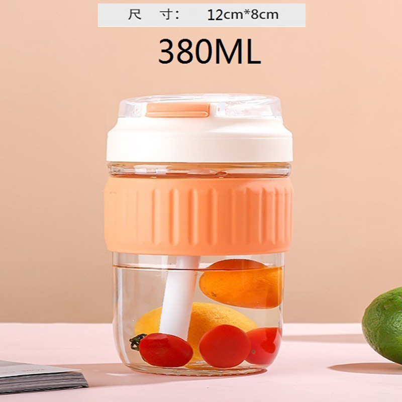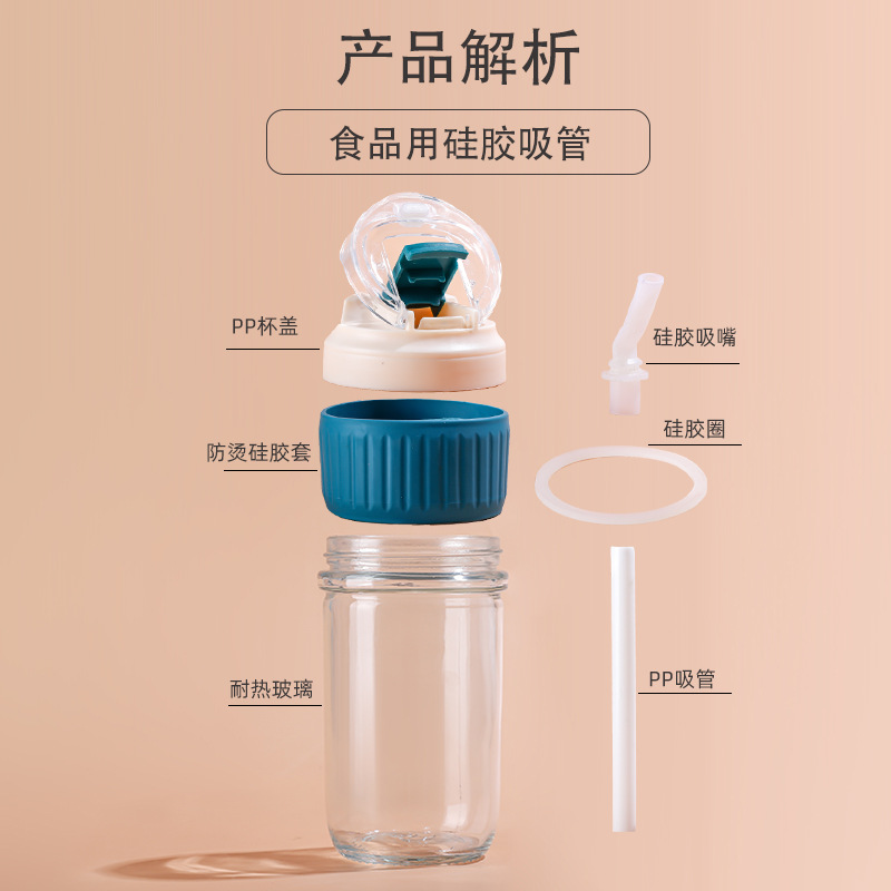 新品玻璃双饮杯高颜值爆款吸管杯办公室专用咖啡杯带盖便携玻璃杯