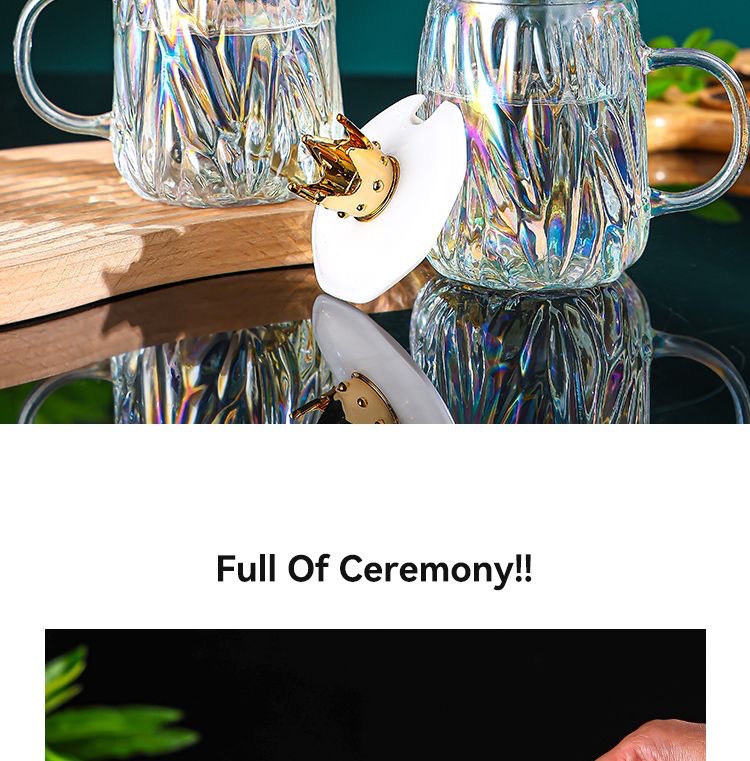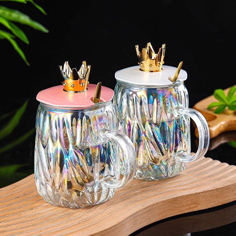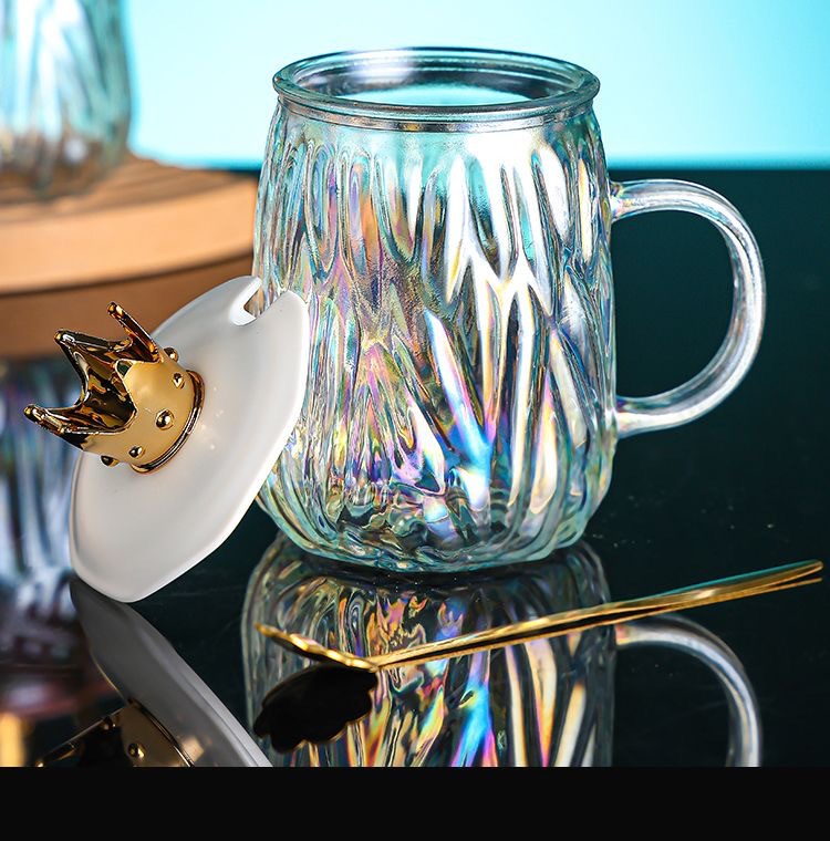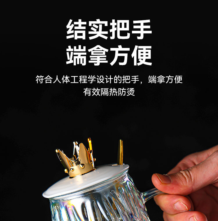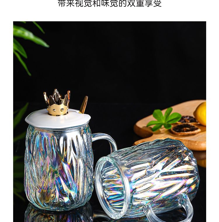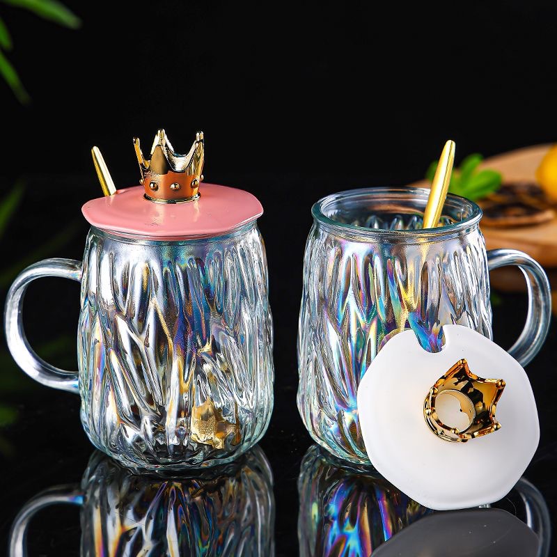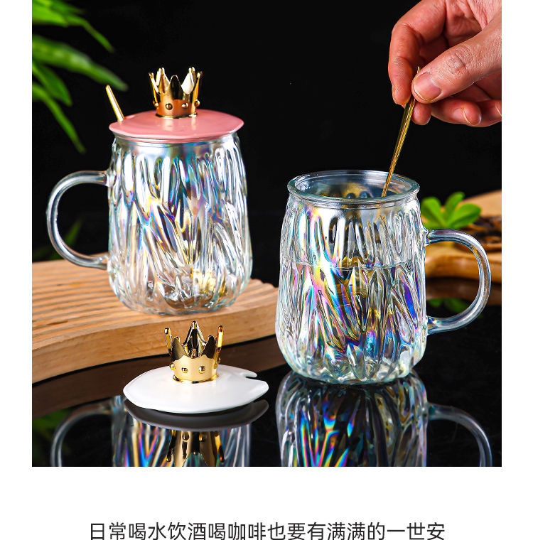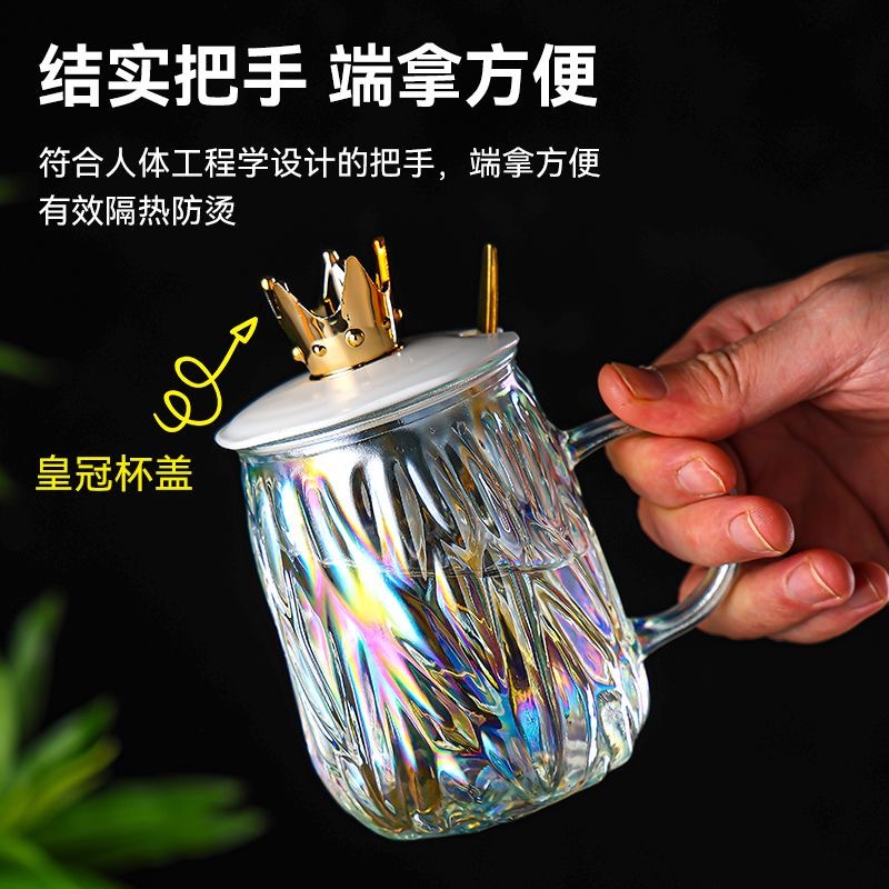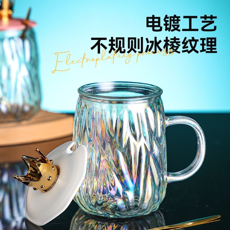 新款高颜值轻奢玻璃杯大容量马克杯耐高温防爆带盖带勺家用牛奶杯