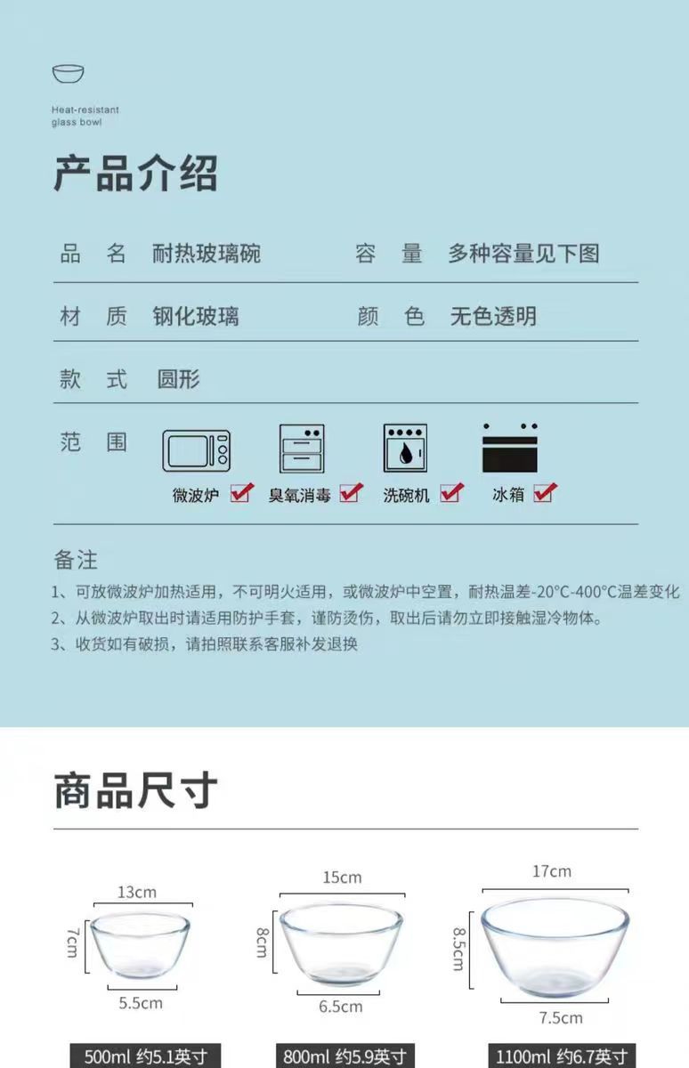 透明玻璃碗家用和面盆拌菜盆沙拉盆发面盆微波炉烤箱专用打蛋碗