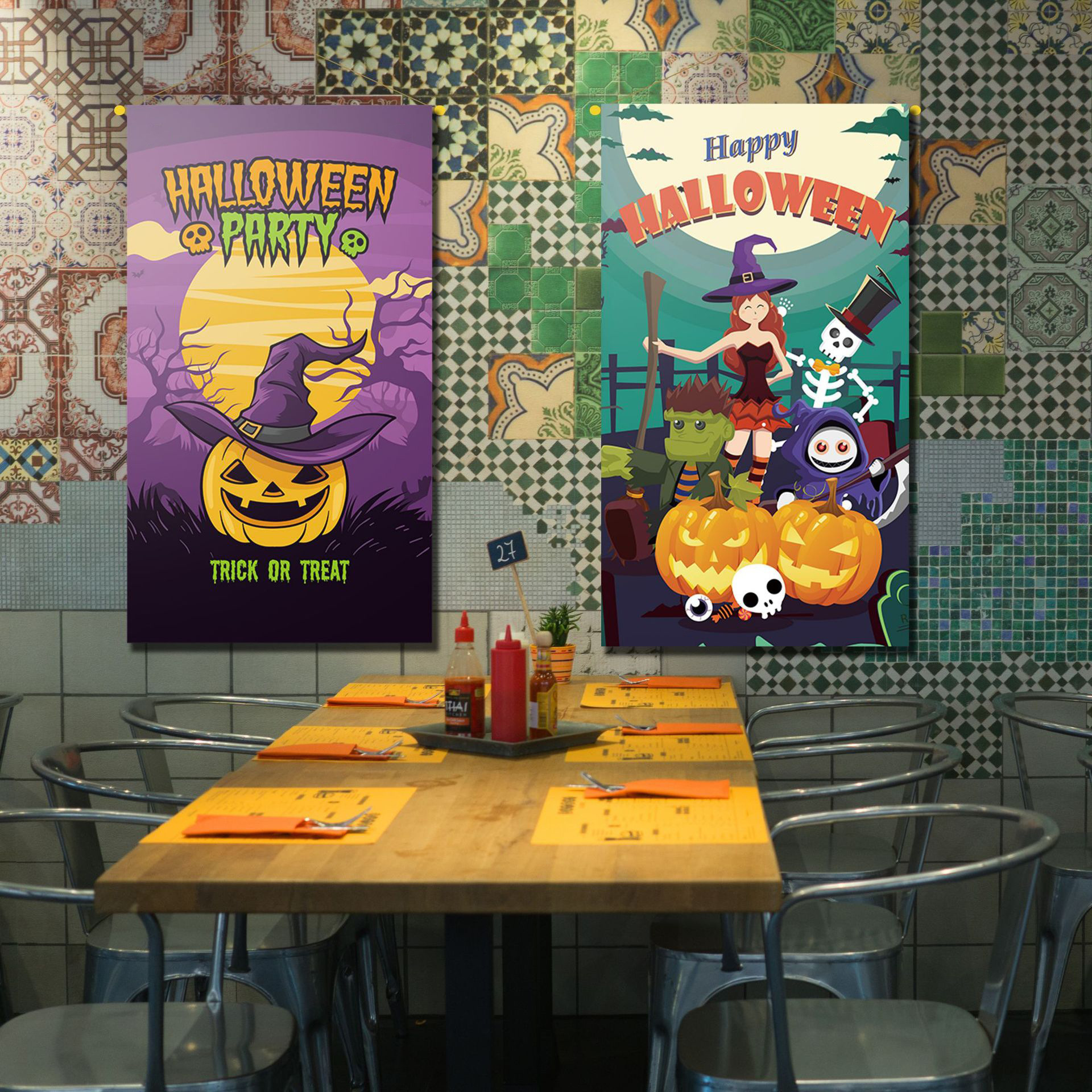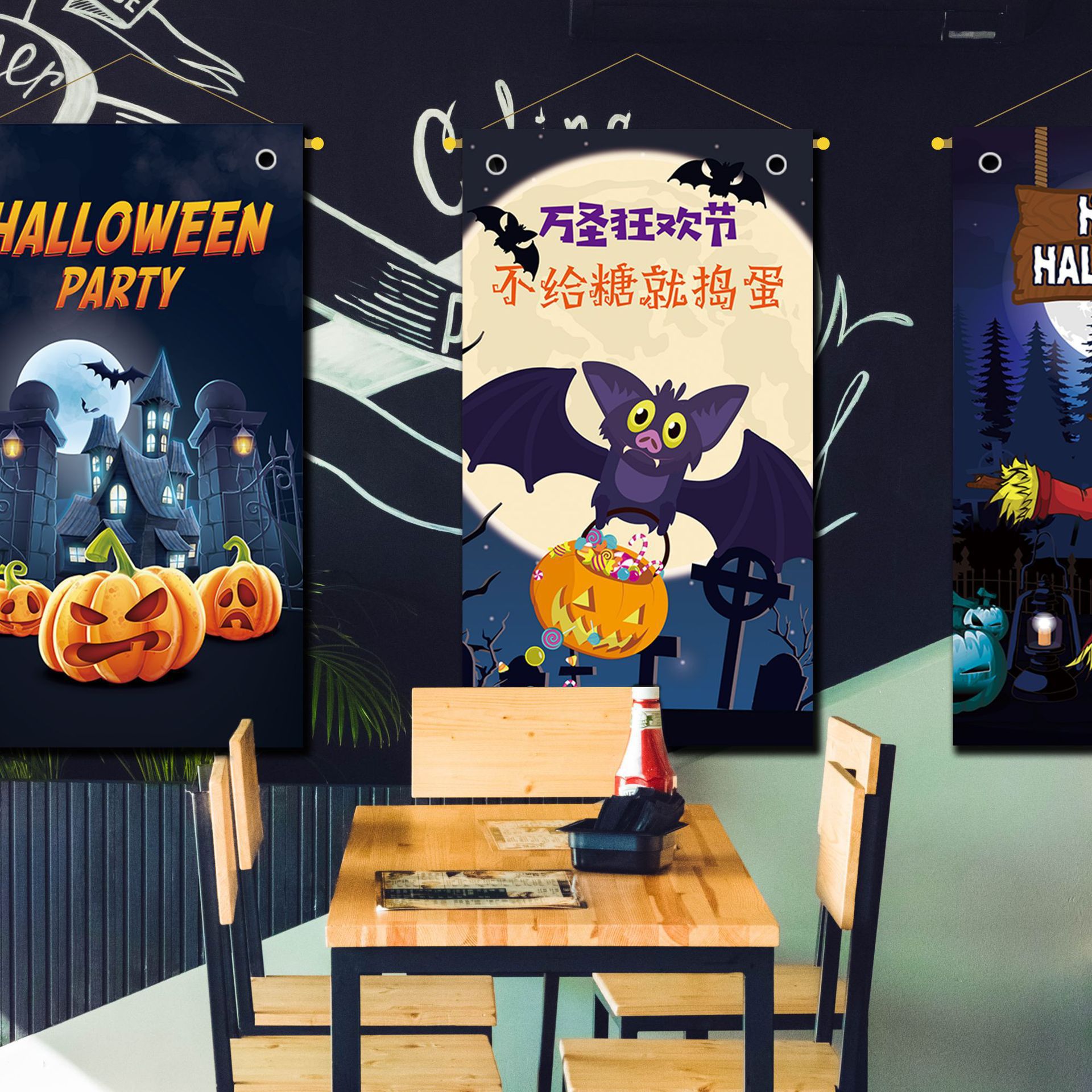 万圣节爆款装饰品电影院海报挂布餐厅酒吧墙纸聚会派对氛围布置