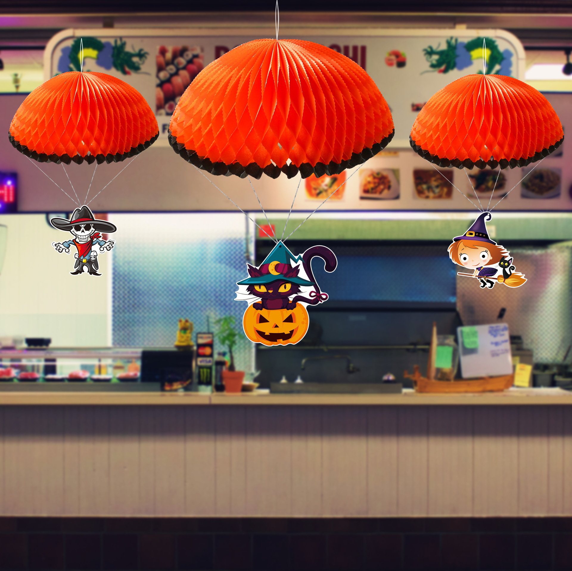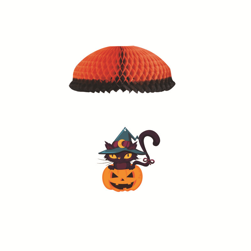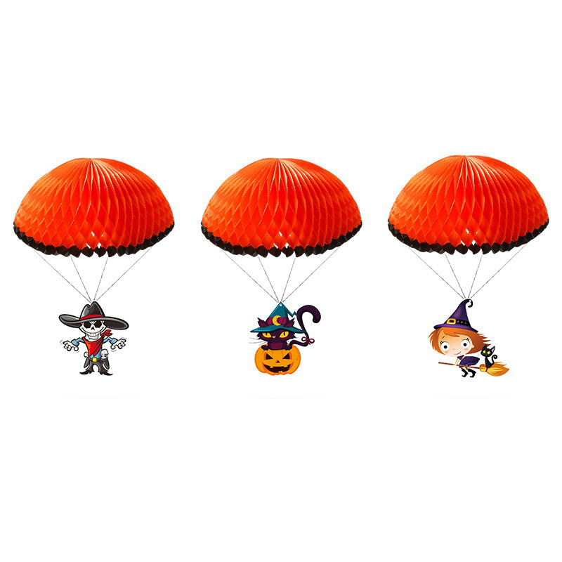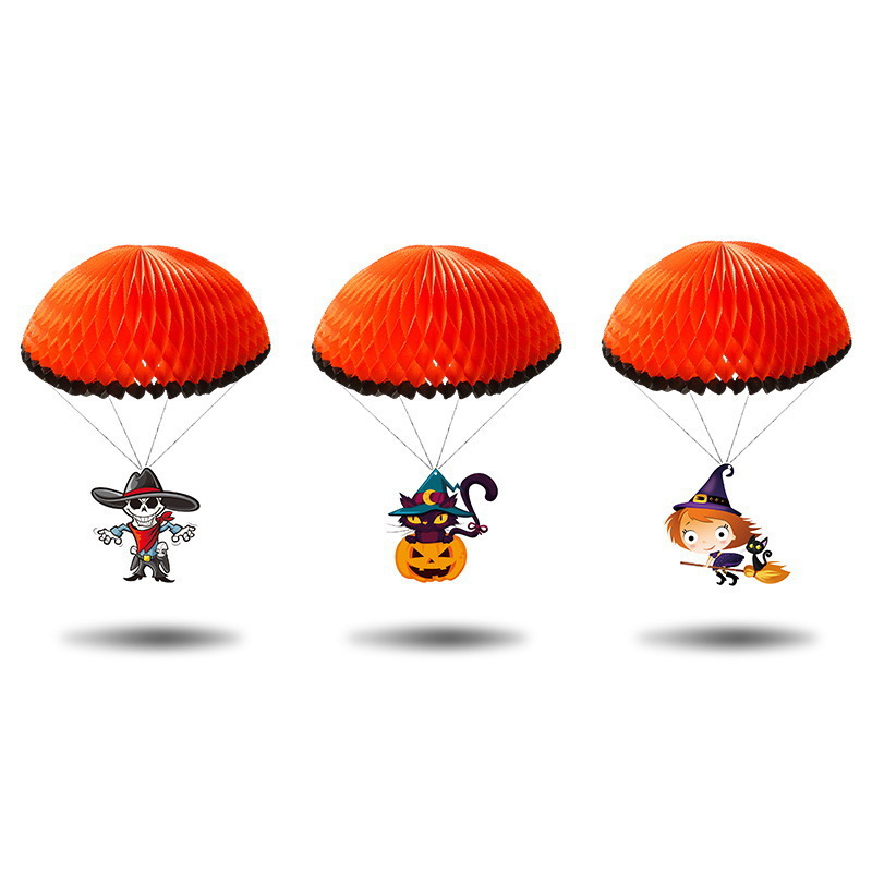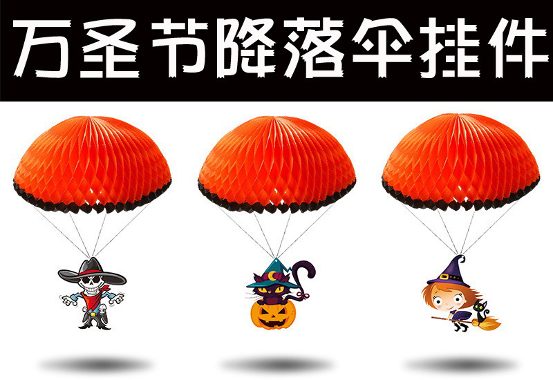 万圣节恐怖装饰降落伞蜂窝球套装女巫骷髅头店铺商场酒吧KTV挂件