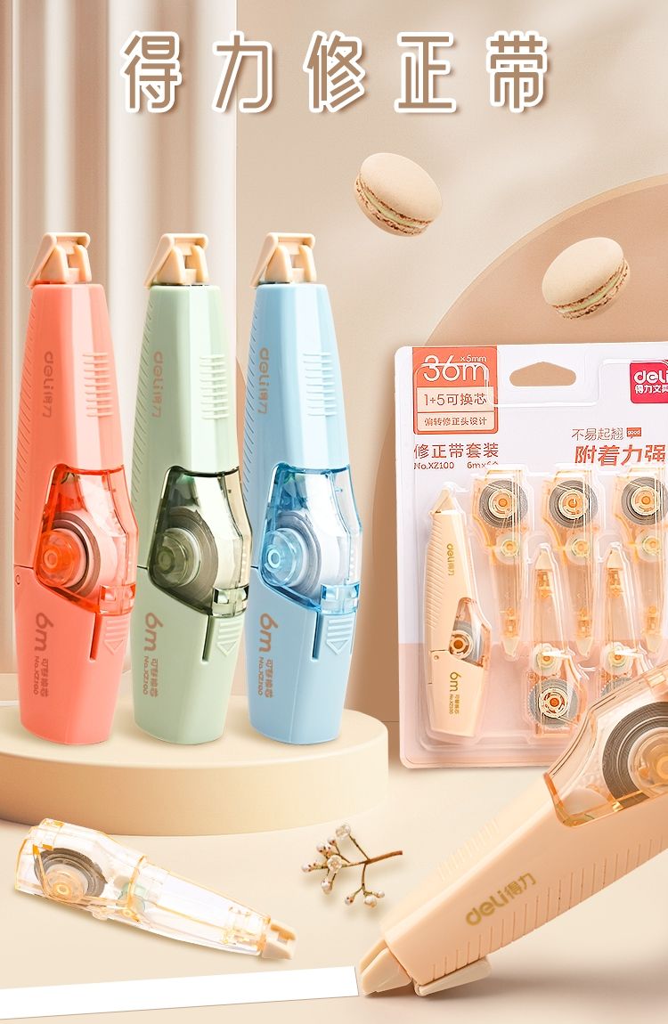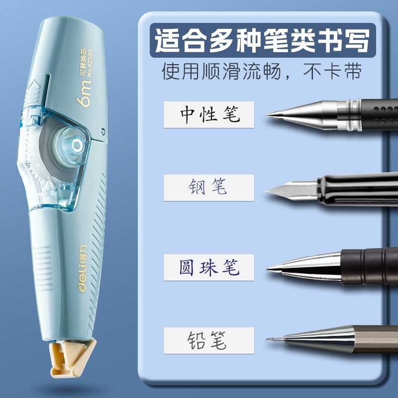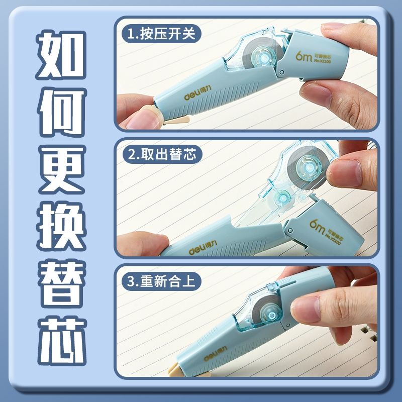 得力修正带学生专用可换替芯便携涂改带可爱改正带可拆卸学习用品