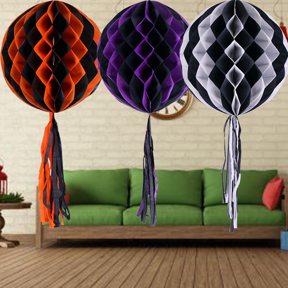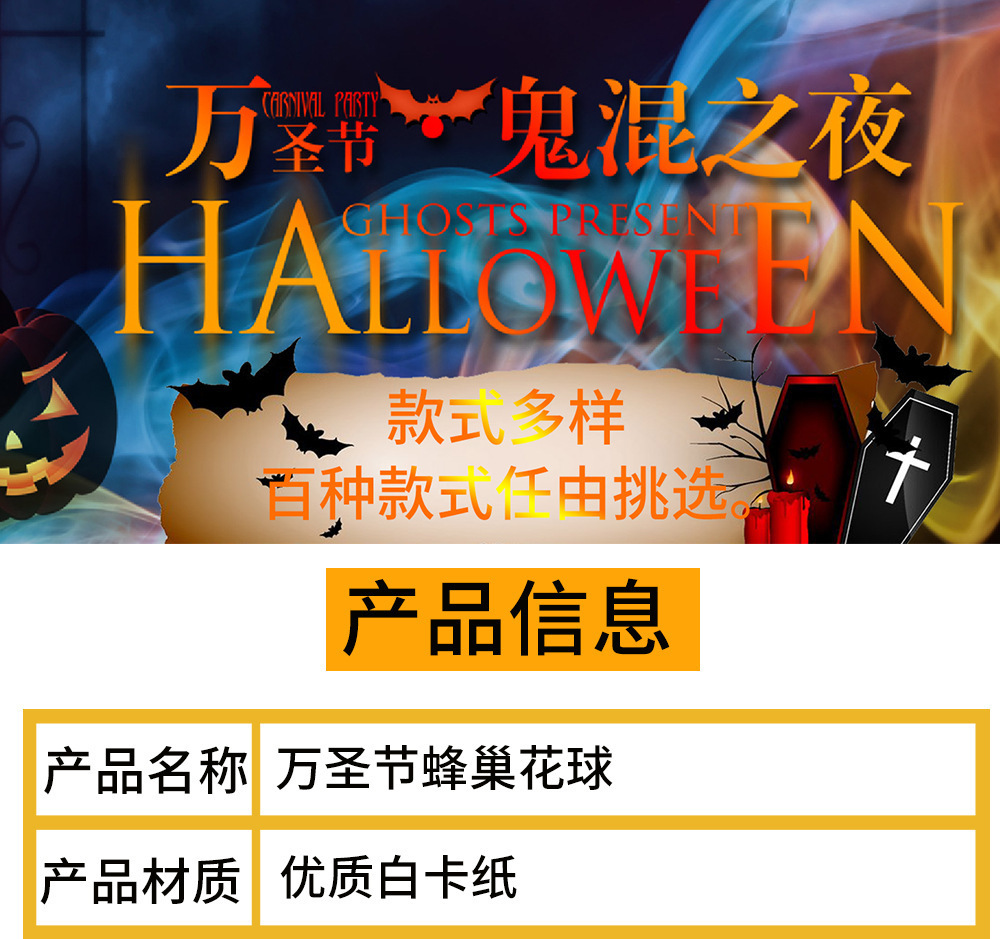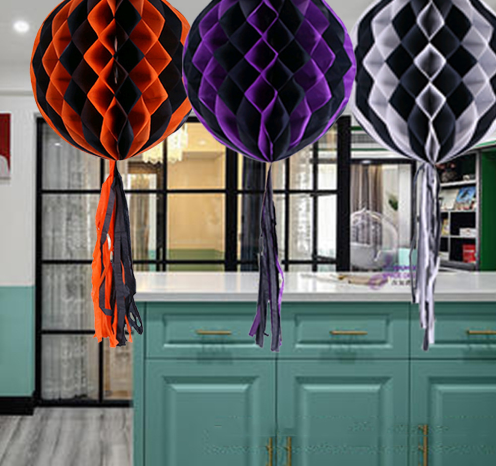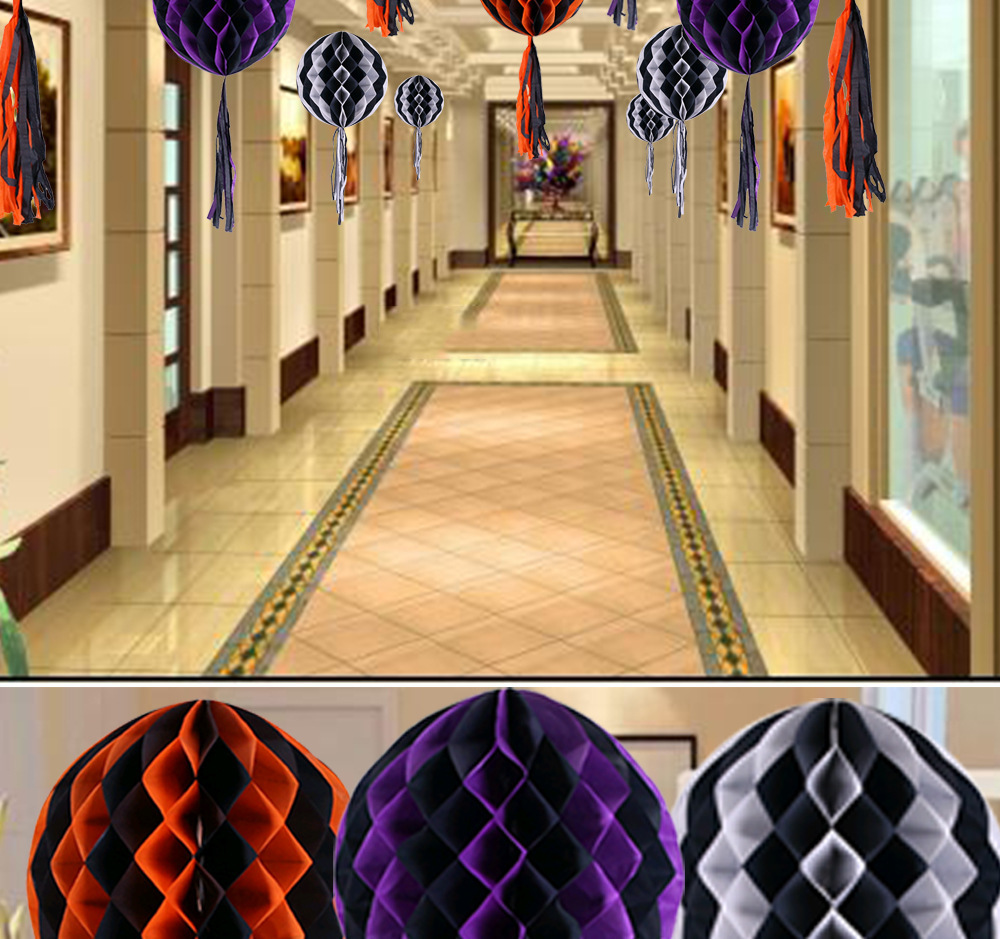 万圣节装饰布置挂件商场店庆装饰蜂窝灯笼纸花球挂饰