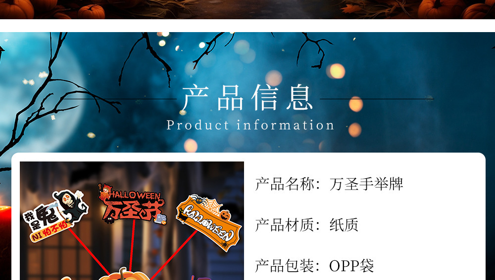 万圣节恐怖手举牌道具 迎宾直播间手持牌运动会搞怪手举牌