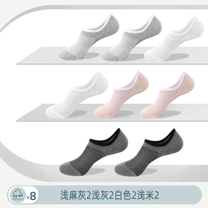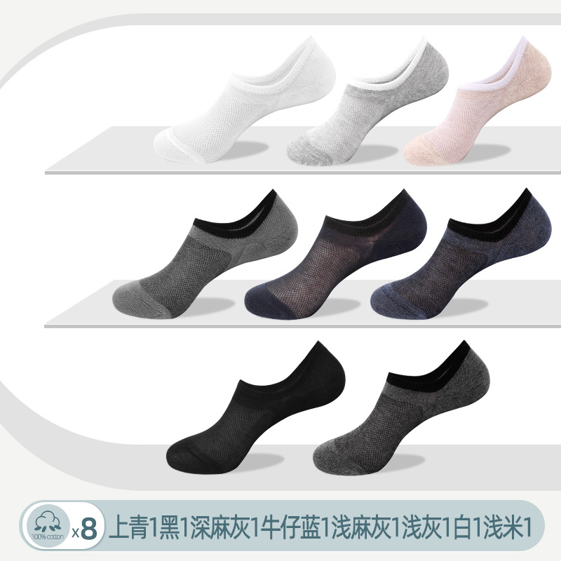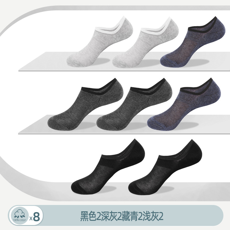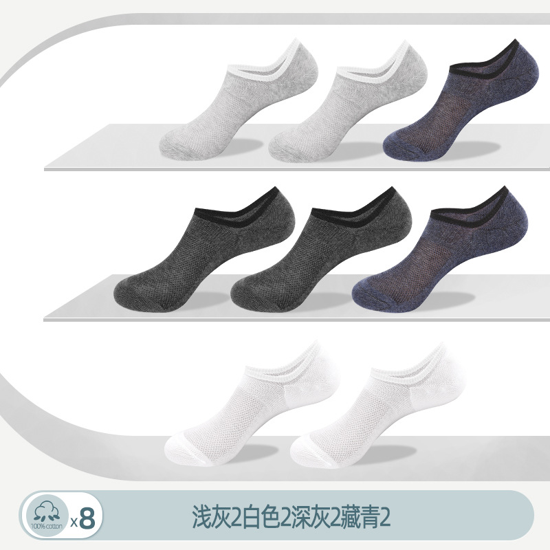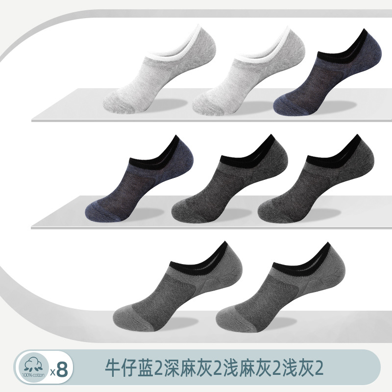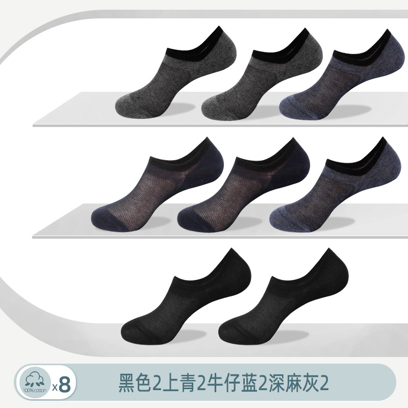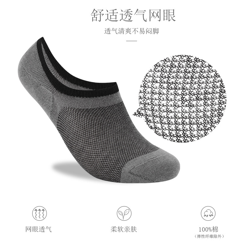 浪莎纯棉船袜男士夏季薄款短袜夏天浅口隐形防滑透气棉质袜子