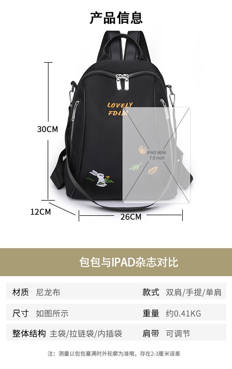 双肩包女新款休闲尼龙时尚高级感女士背包户外旅行包