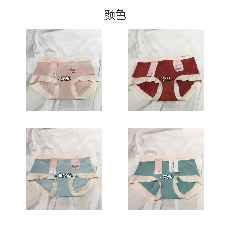 班郦雅包臀无痕边60支超细旦莫代尔撞色舒适透气设计中腰内裤女