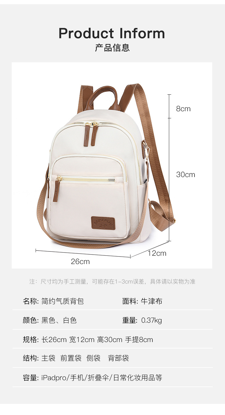 新款牛津布简约休闲双肩包时尚潮流学生书包旅行背包
