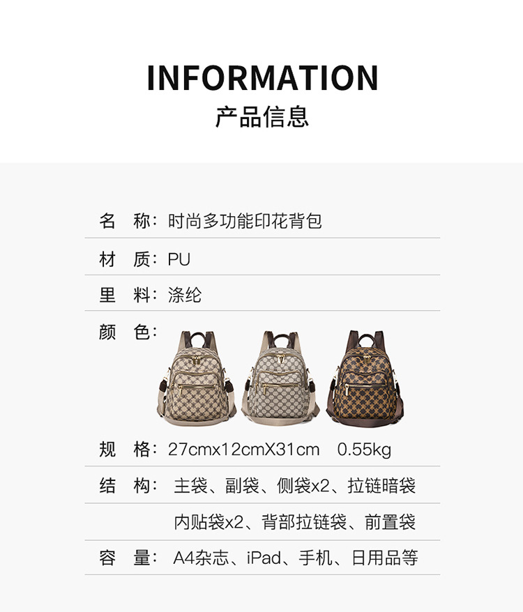 时尚女包2023新款妈咪包复古旅行外出双肩背包