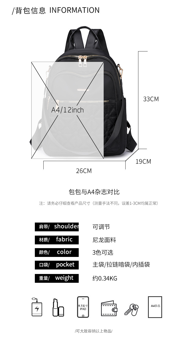 双肩包女2024新款牛津布小背包女士时尚妈咪包