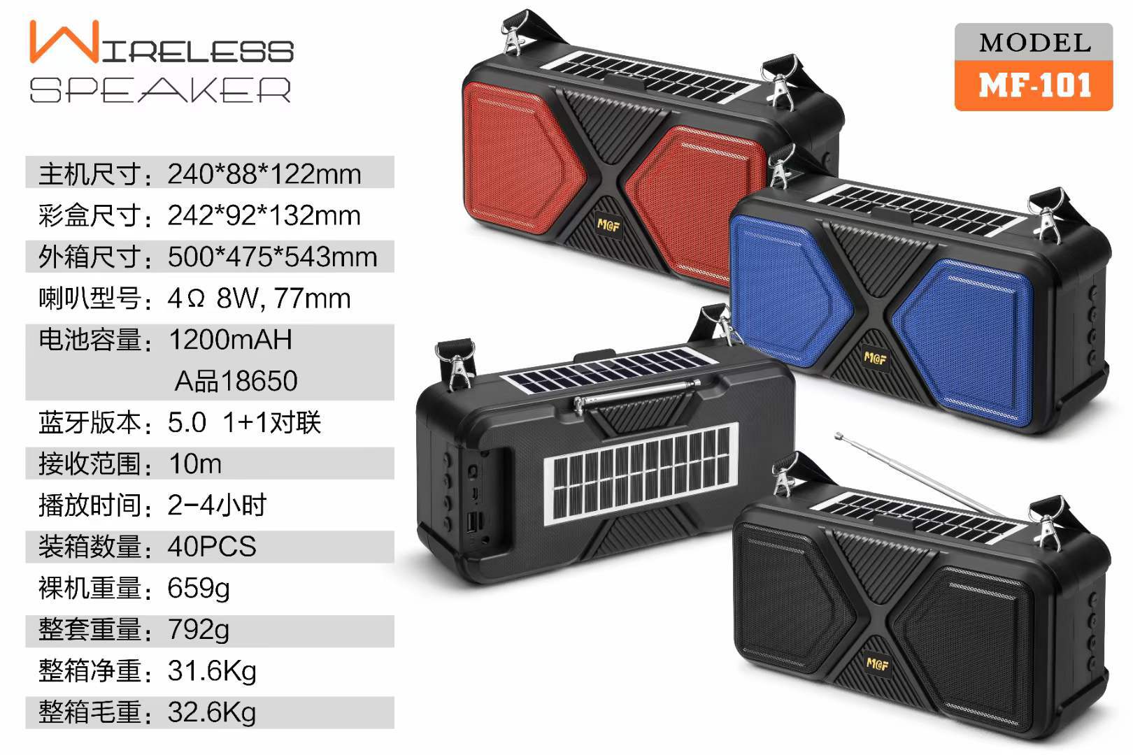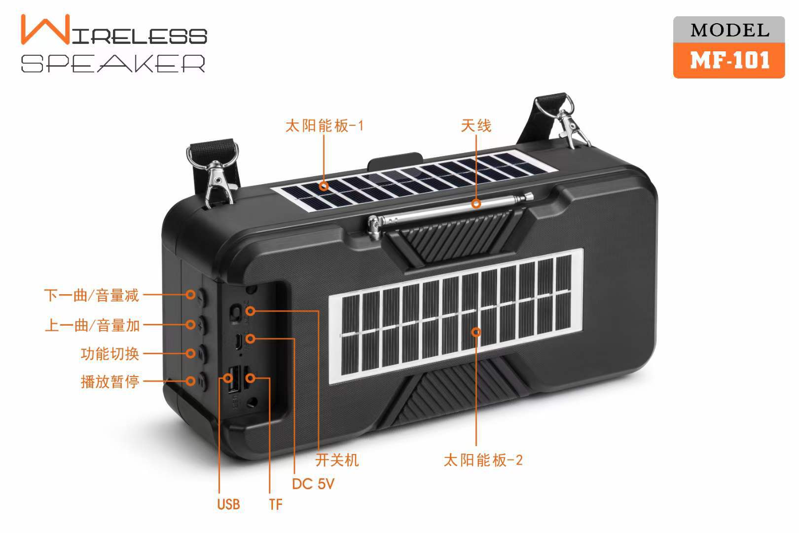 MF101新款热卖双太阳能板蓝牙音箱双喇叭户外便携式低音炮蓝牙音
