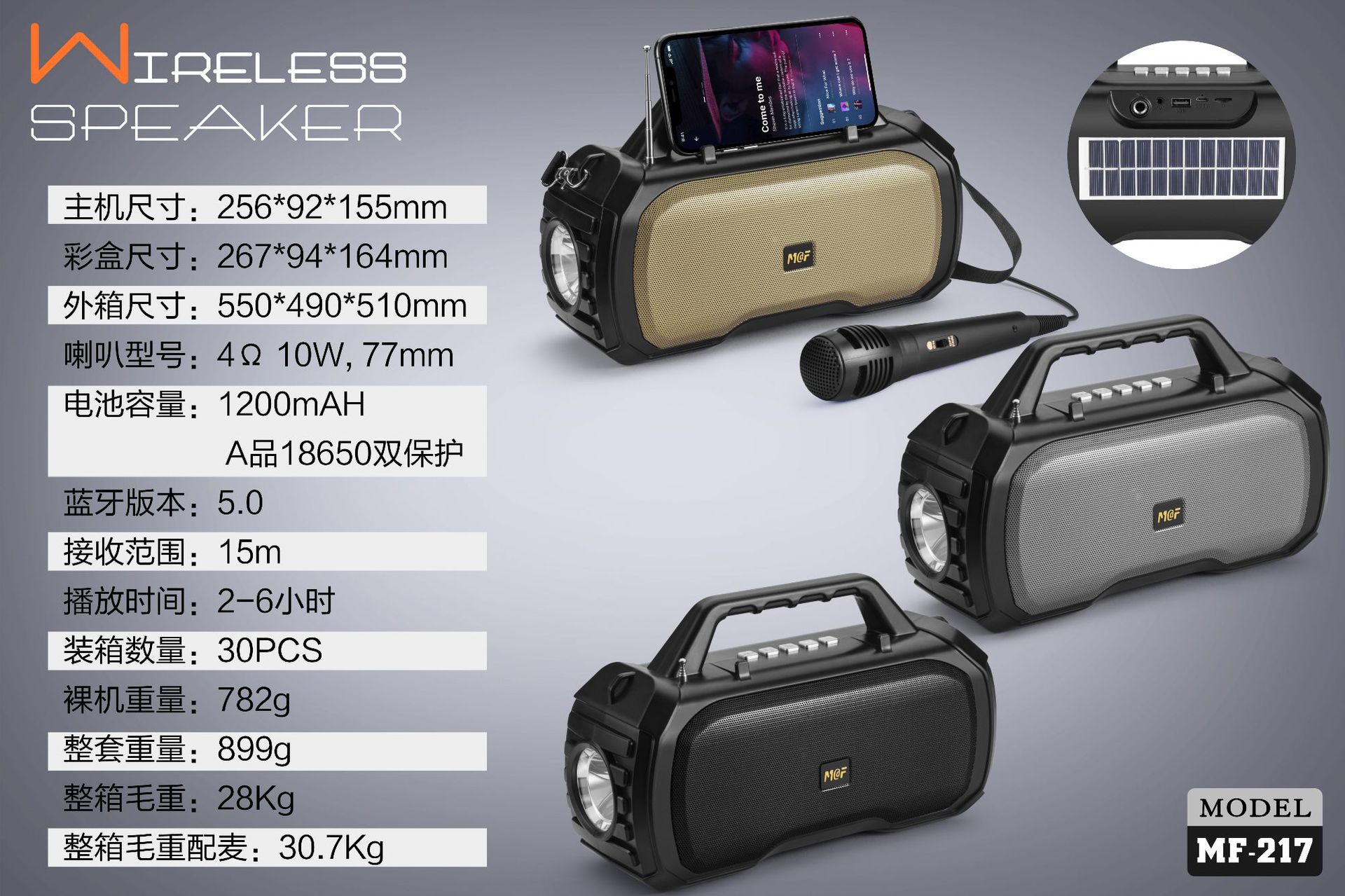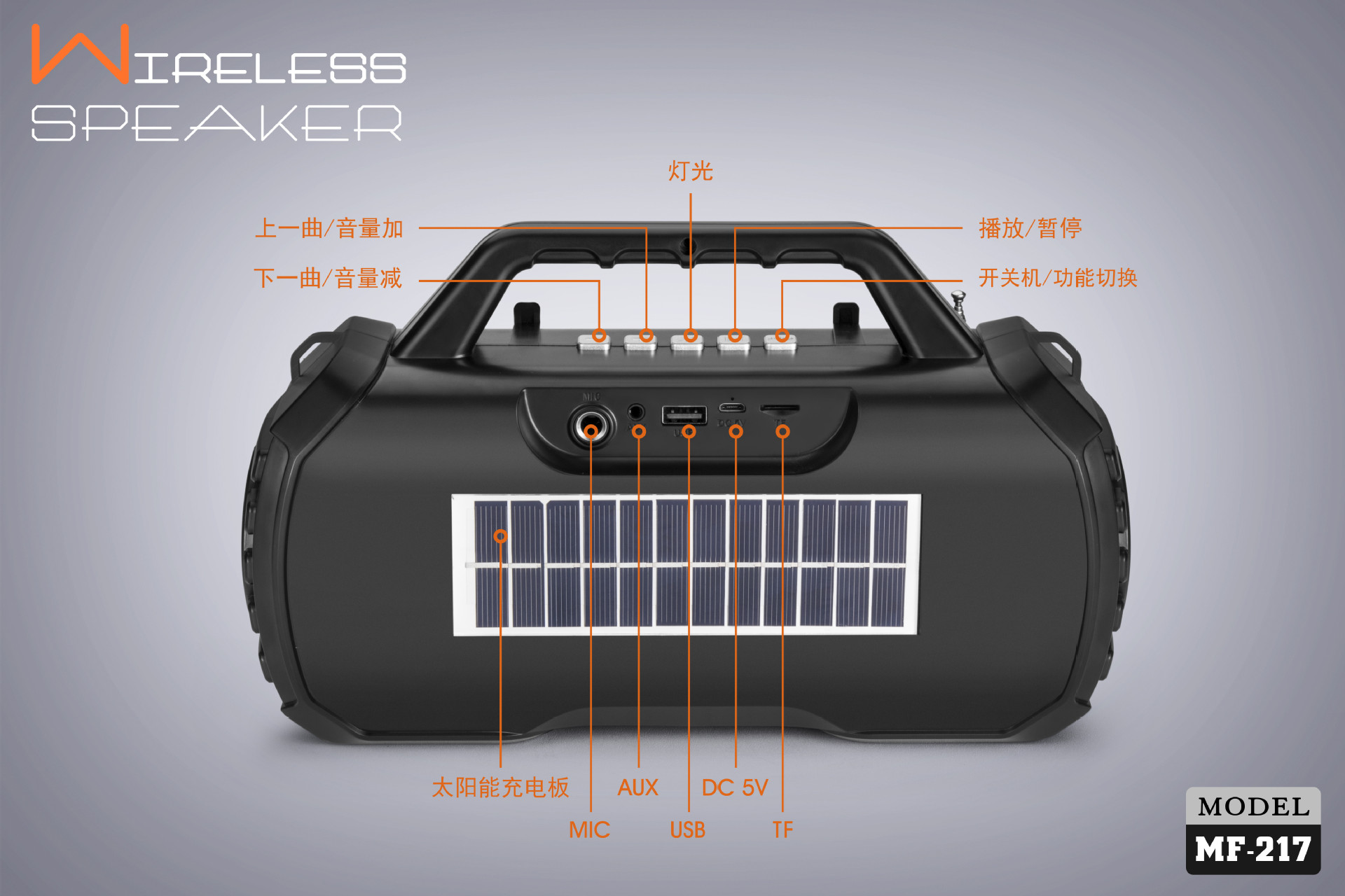 MF217新款热卖无线蓝牙音箱太阳能板充电手电筒户外低音炮收音机