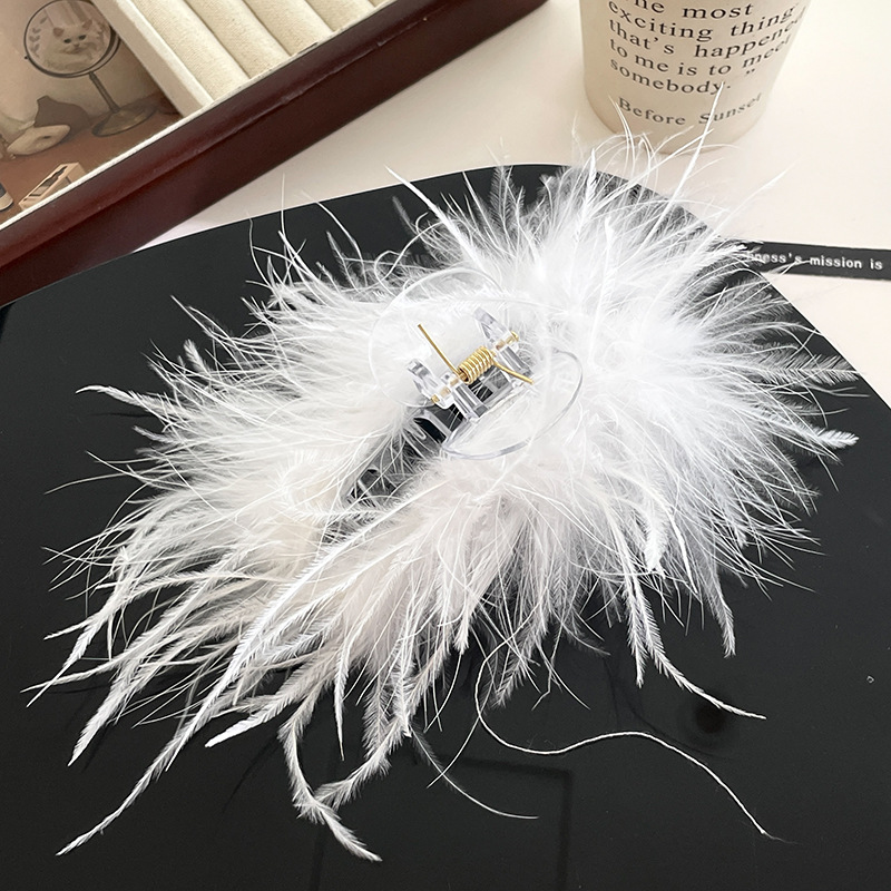蝴蝶结头饰羽毛抓夹女后脑勺夹子高级感鲨鱼夹鸵鸟毛发夹发抓发卡