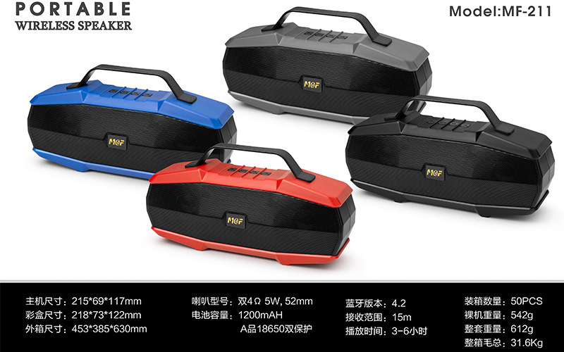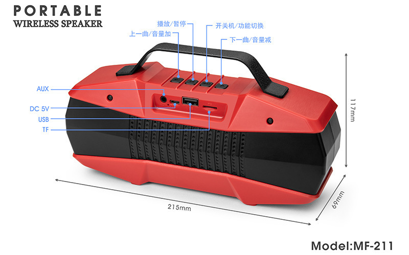 跨境爆款MF-211手提无线蓝牙音箱户外家用插卡大音量便携式低音炮
