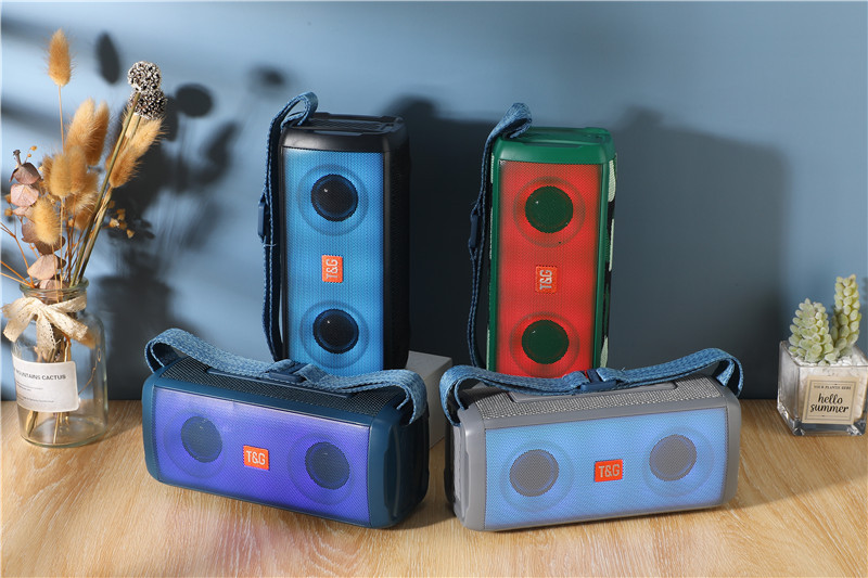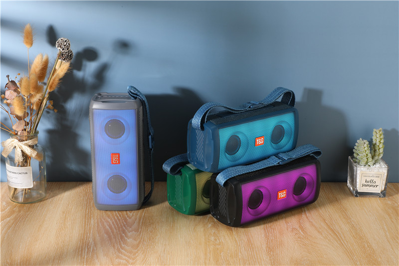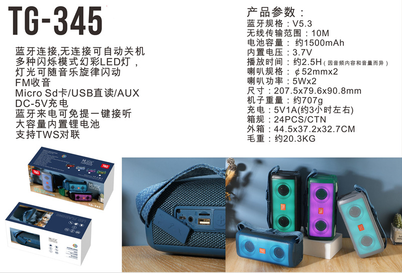 TG-345背带便携式蓝牙音箱幻彩led灯双喇叭大音量音响tws插卡音响