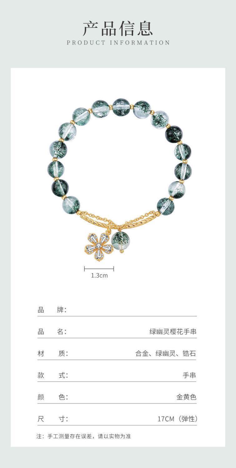 | green phantom quartz cherry blossom bracelet [high quality]](绿幽灵樱花手链【高品质】) | USD $6.6 | 99996 piece available |