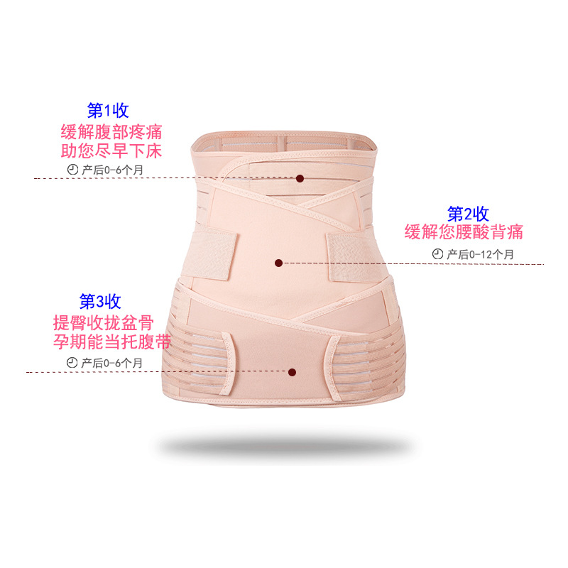 收腹带 亚马逊专供透气产后束腹带条状三件套束缚带调整束型带