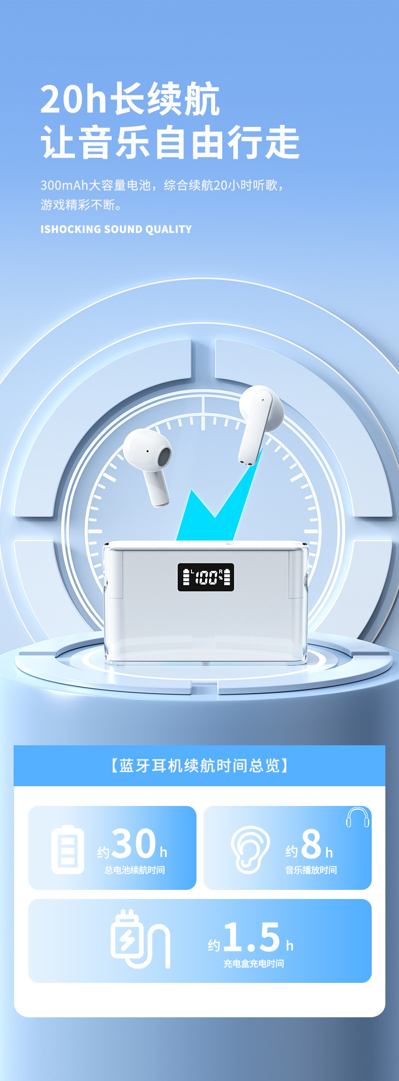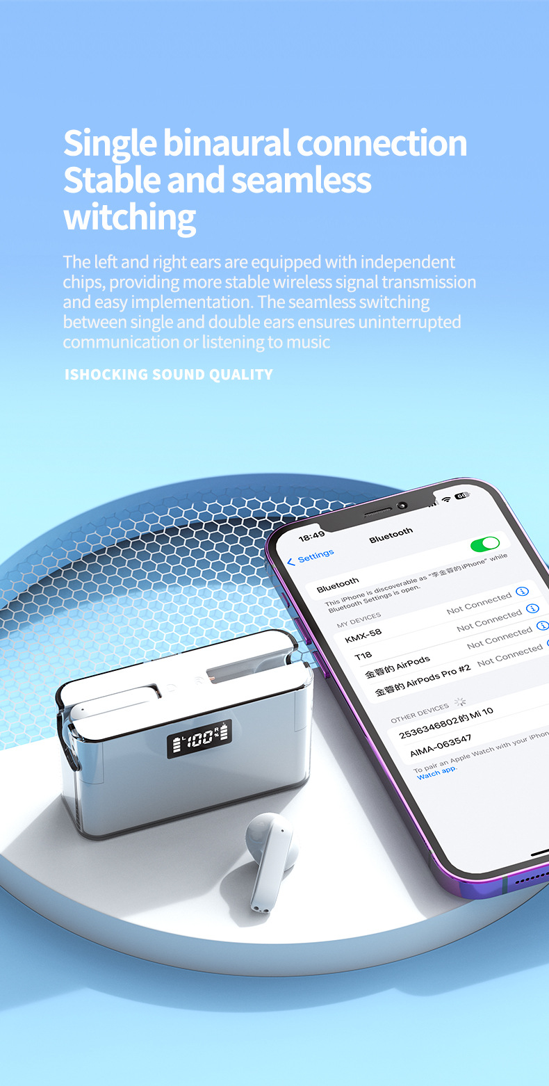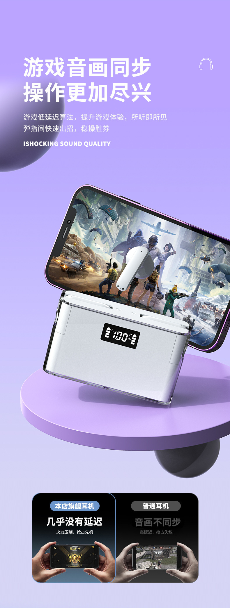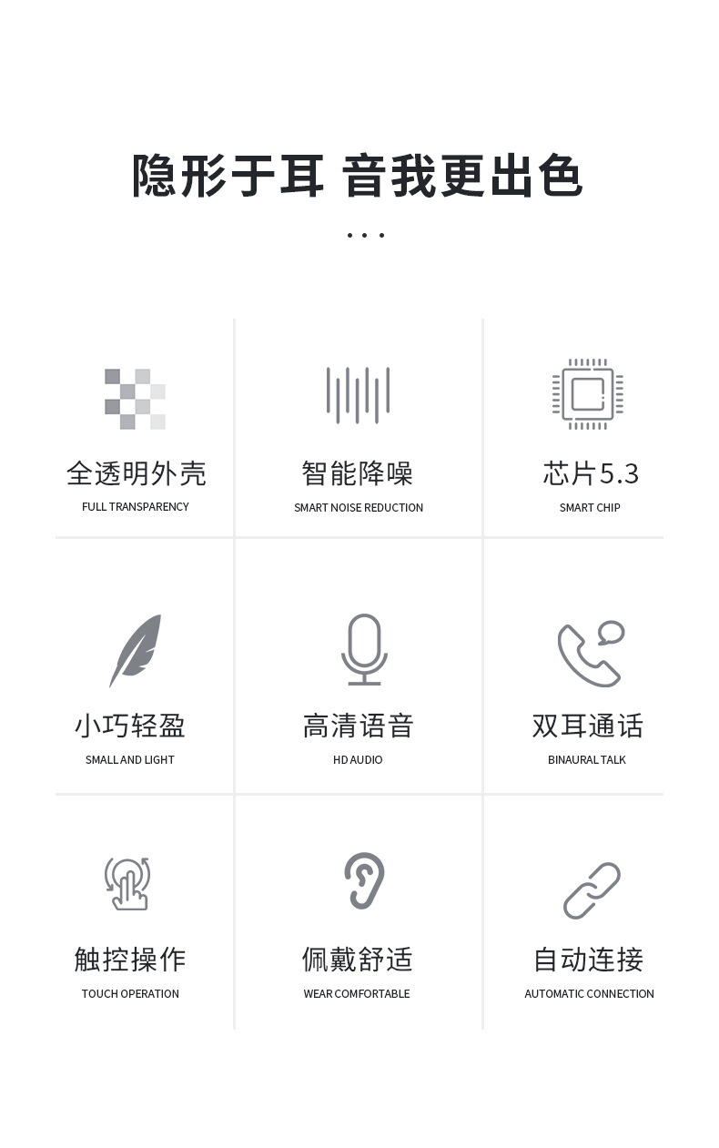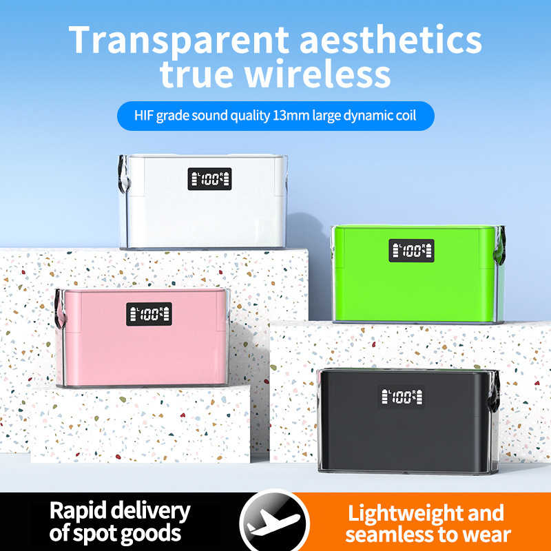 新款TM11无线TWS蓝牙耳机水晶透明挂绳长续航外贸批发