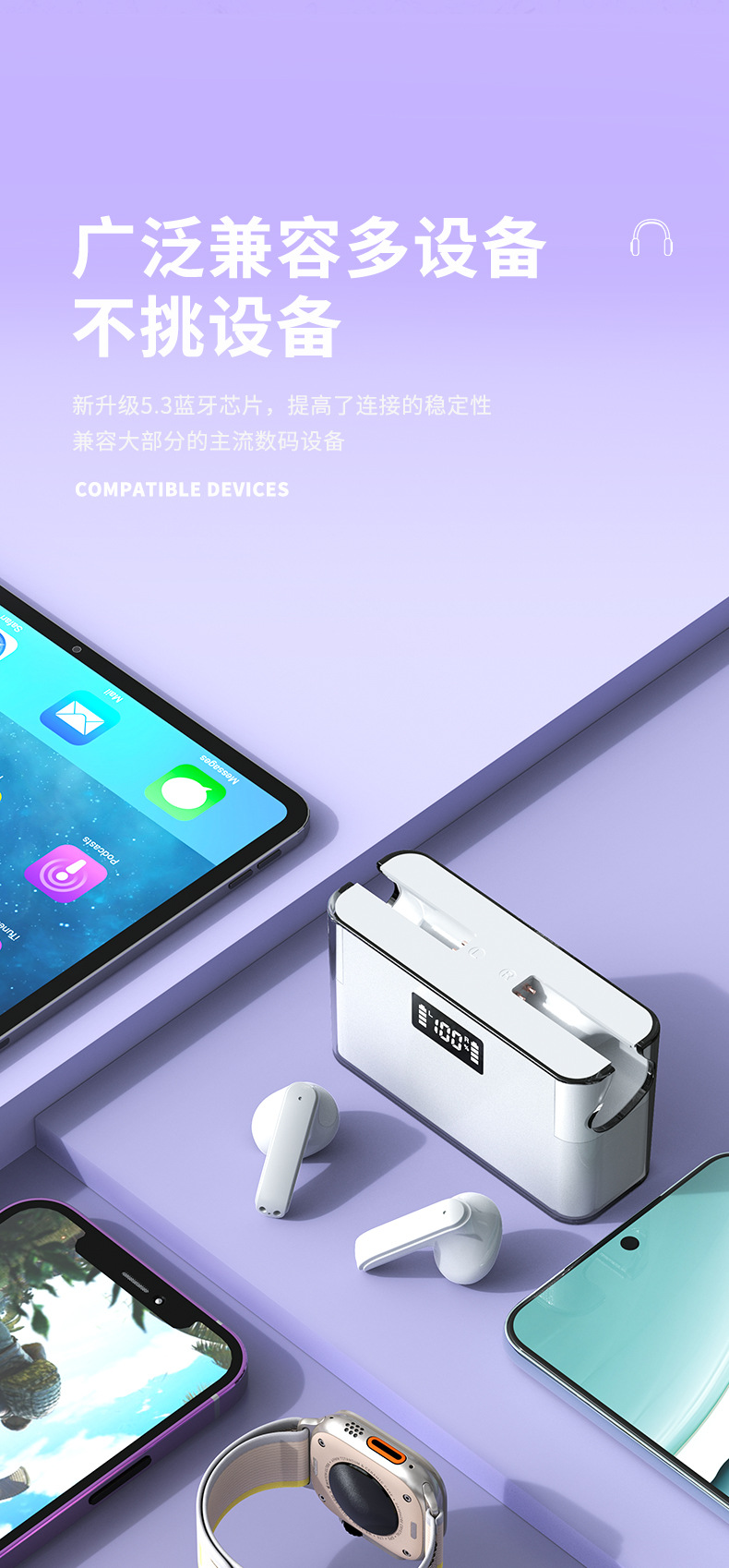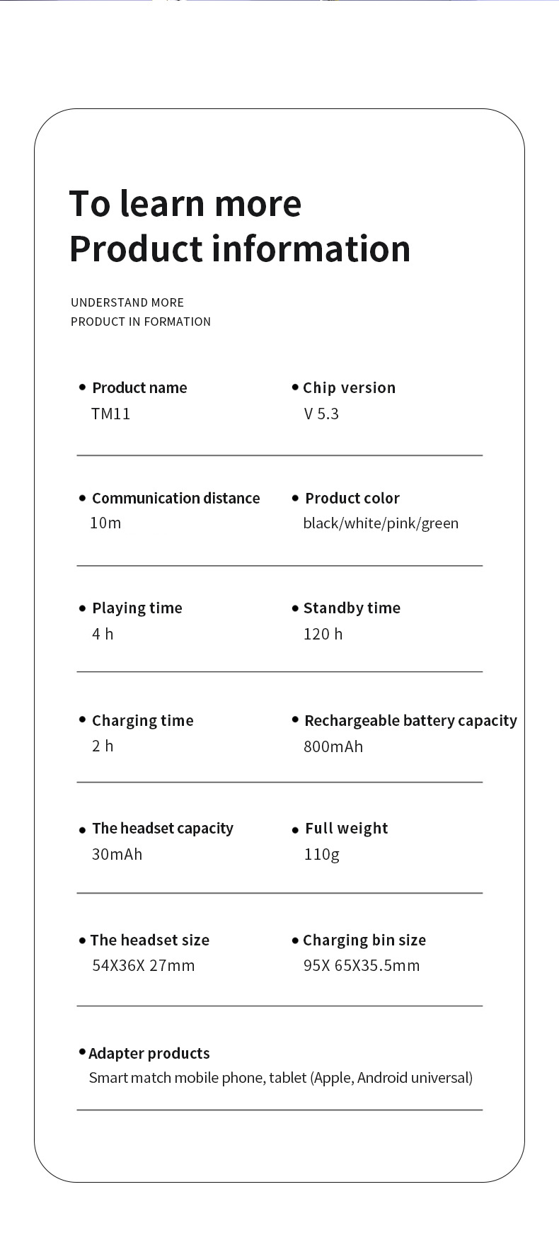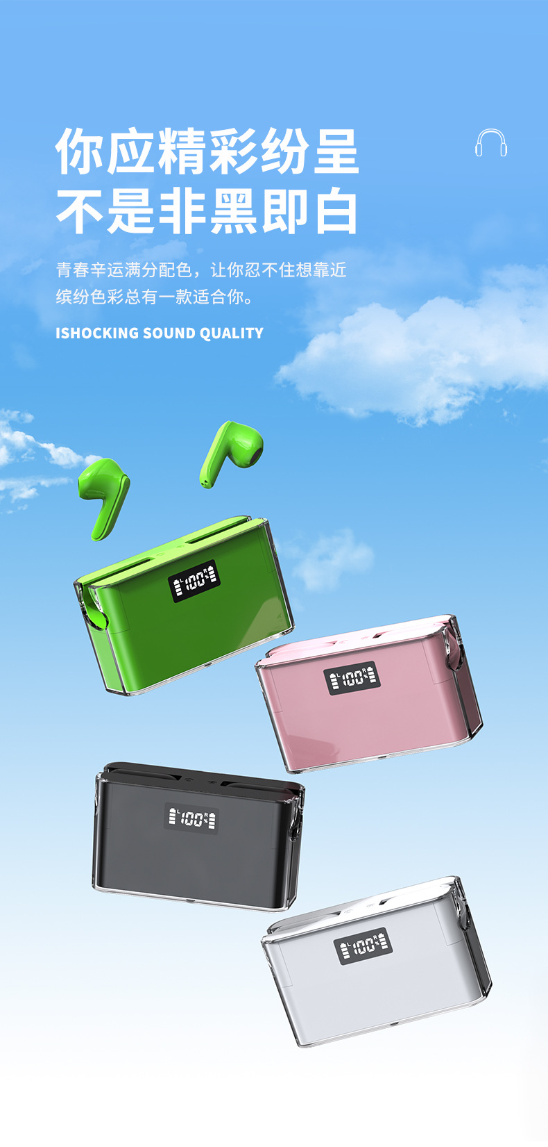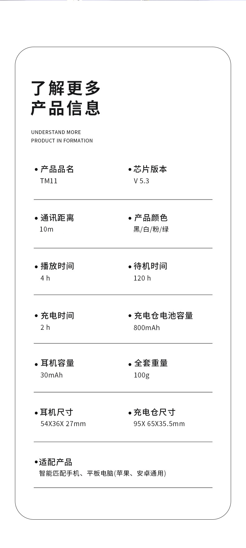 新款TM11无线TWS蓝牙耳机水晶透明挂绳长续航外贸批发