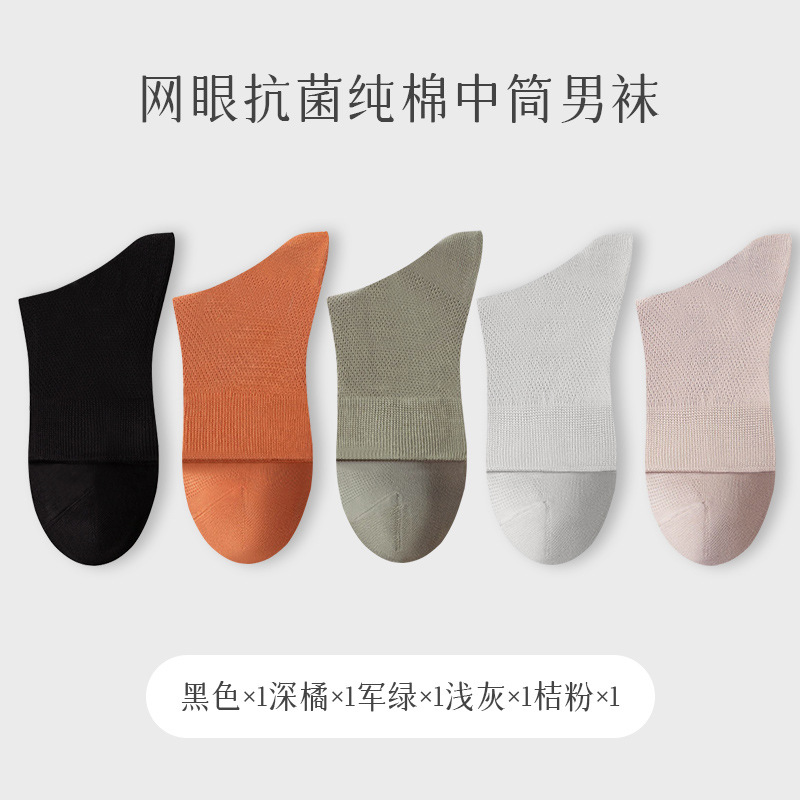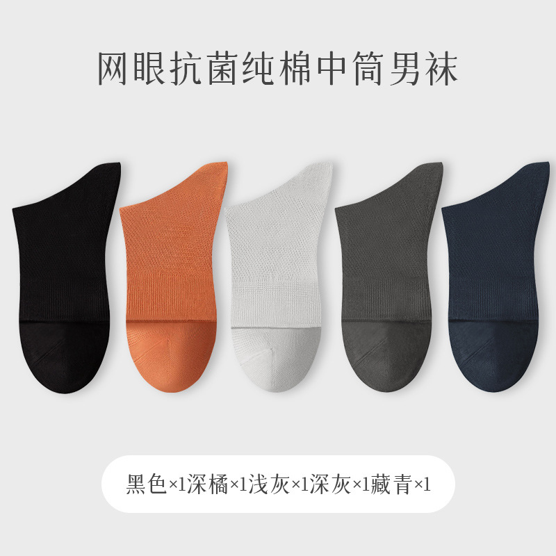 夏季袜子纯棉男士防臭吸汗中筒袜春夏薄款纯棉男袜夏天男款纯棉袜