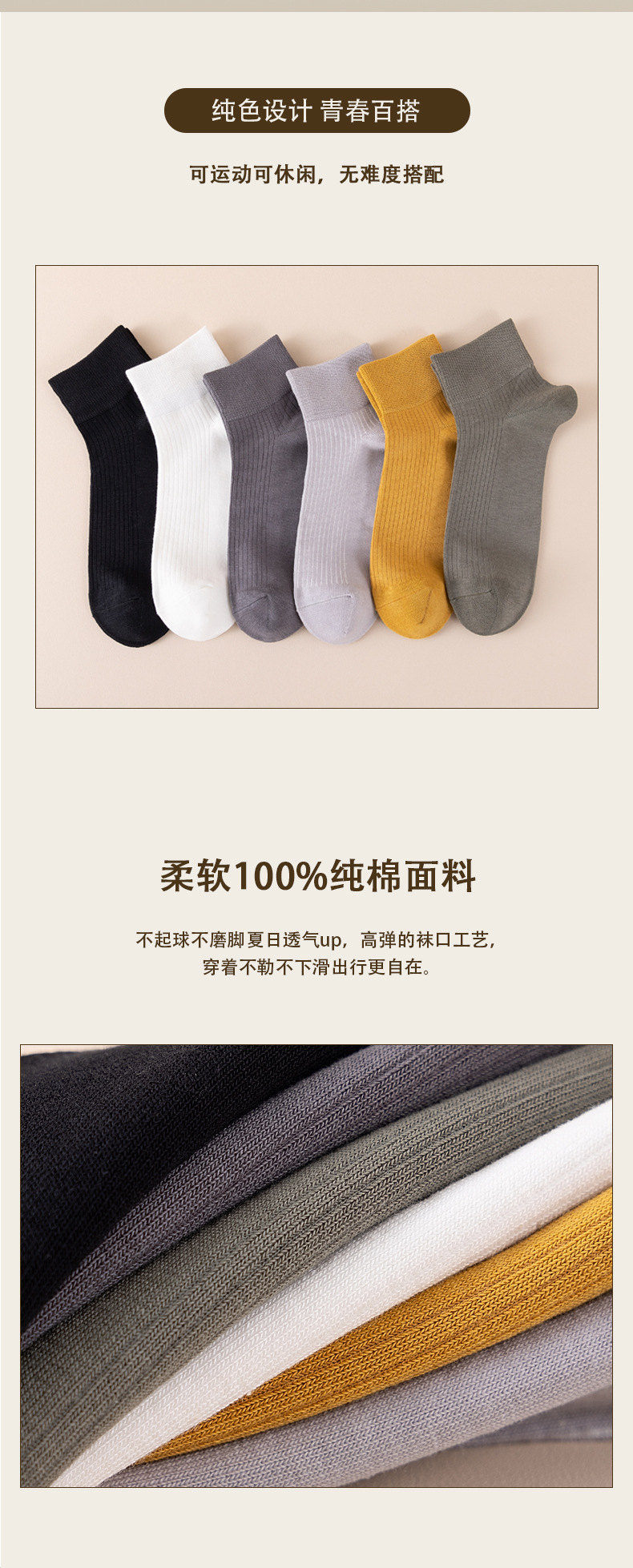 【6双装】袜子夏天男士吸汗防臭夏季纯棉运动袜全棉抗起球男袜子