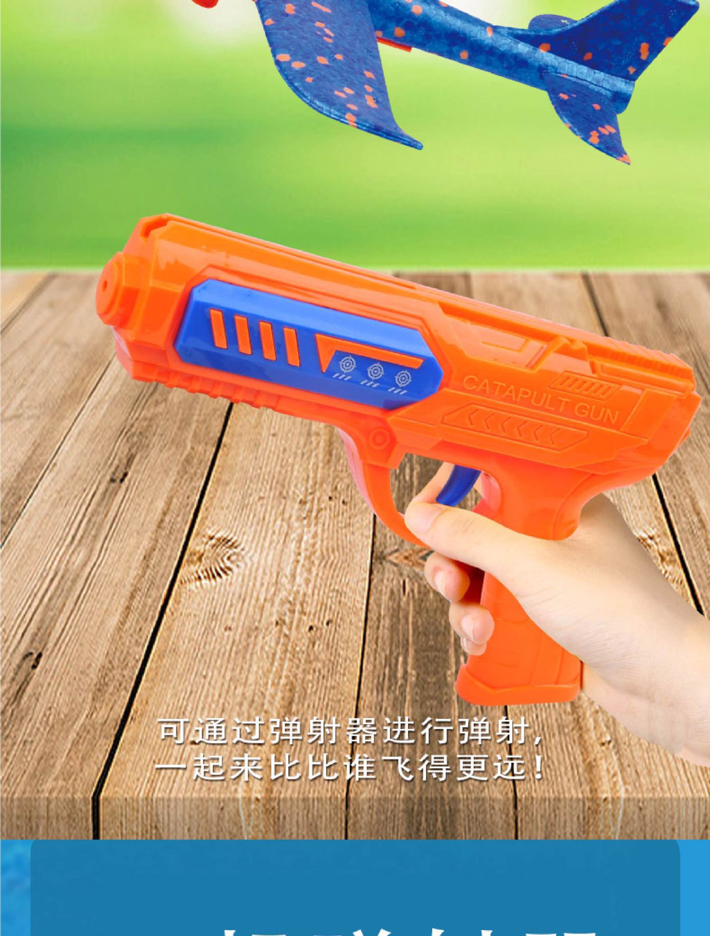 跨境飞碟儿童弹射泡沫飞机枪手抛回旋发射枪户外亲子耐摔男孩玩具