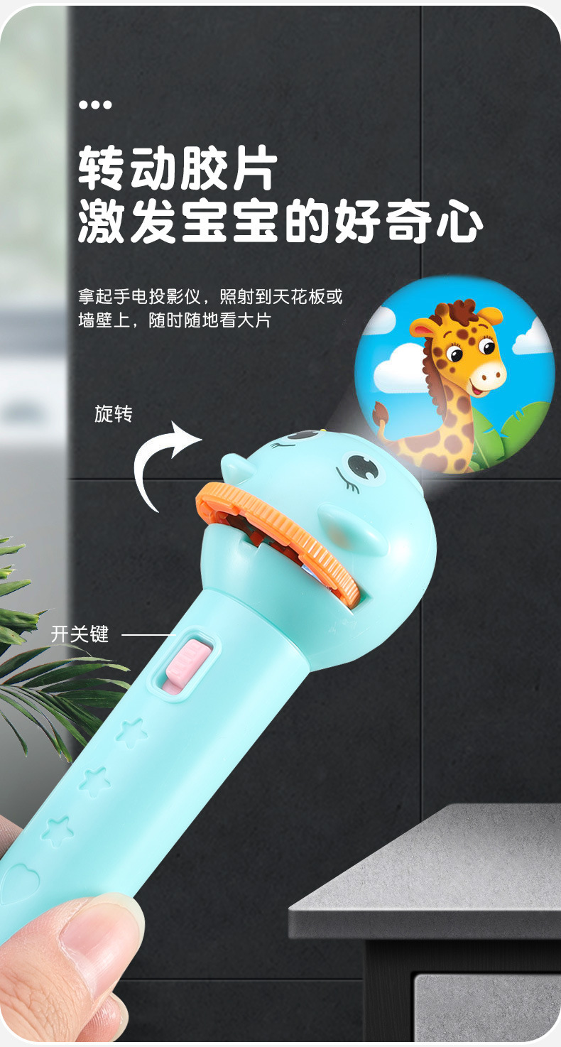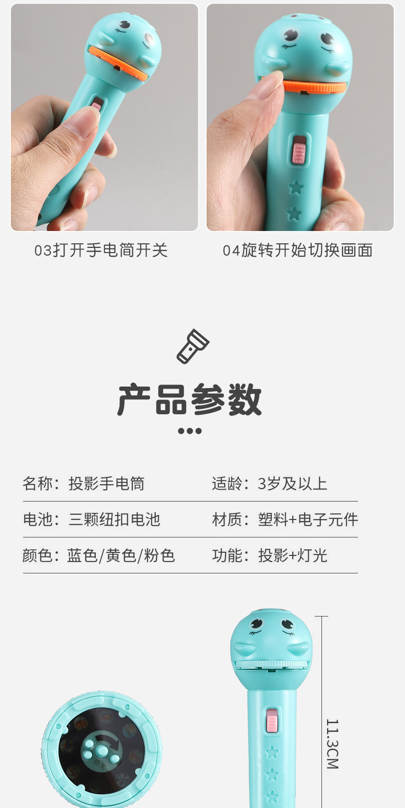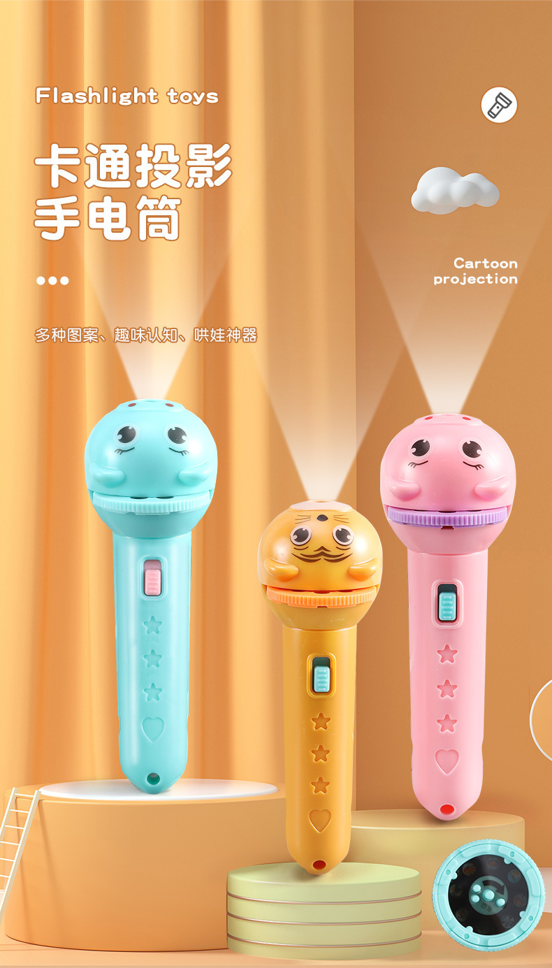 新款儿童发光投影手电筒宝宝益智早教动物图案投影仪地摊玩具批发